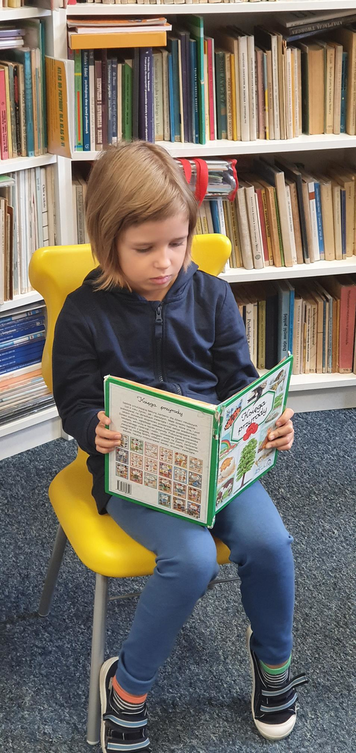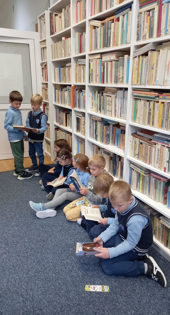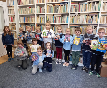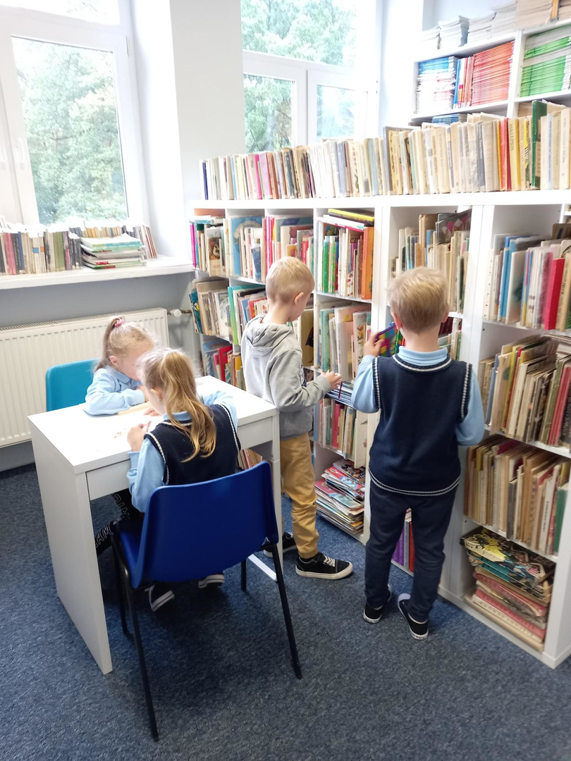 Wizyta miała na celu poznanie przez najmłodszych uczniów pomieszczeń bibliotecznych oraz zasad korzystania z biblioteki.
