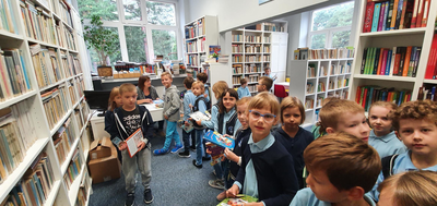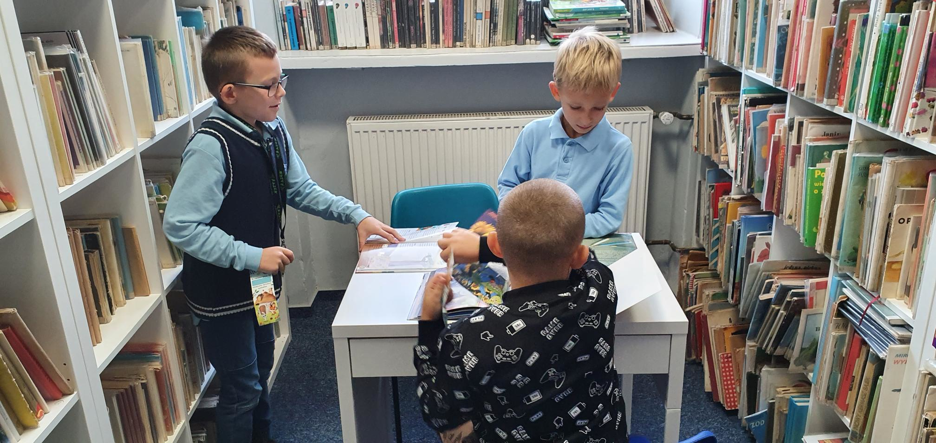 We wrześniu uczniowie klas 1a i 1b wzięli udział w lekcji bibliotecznej.