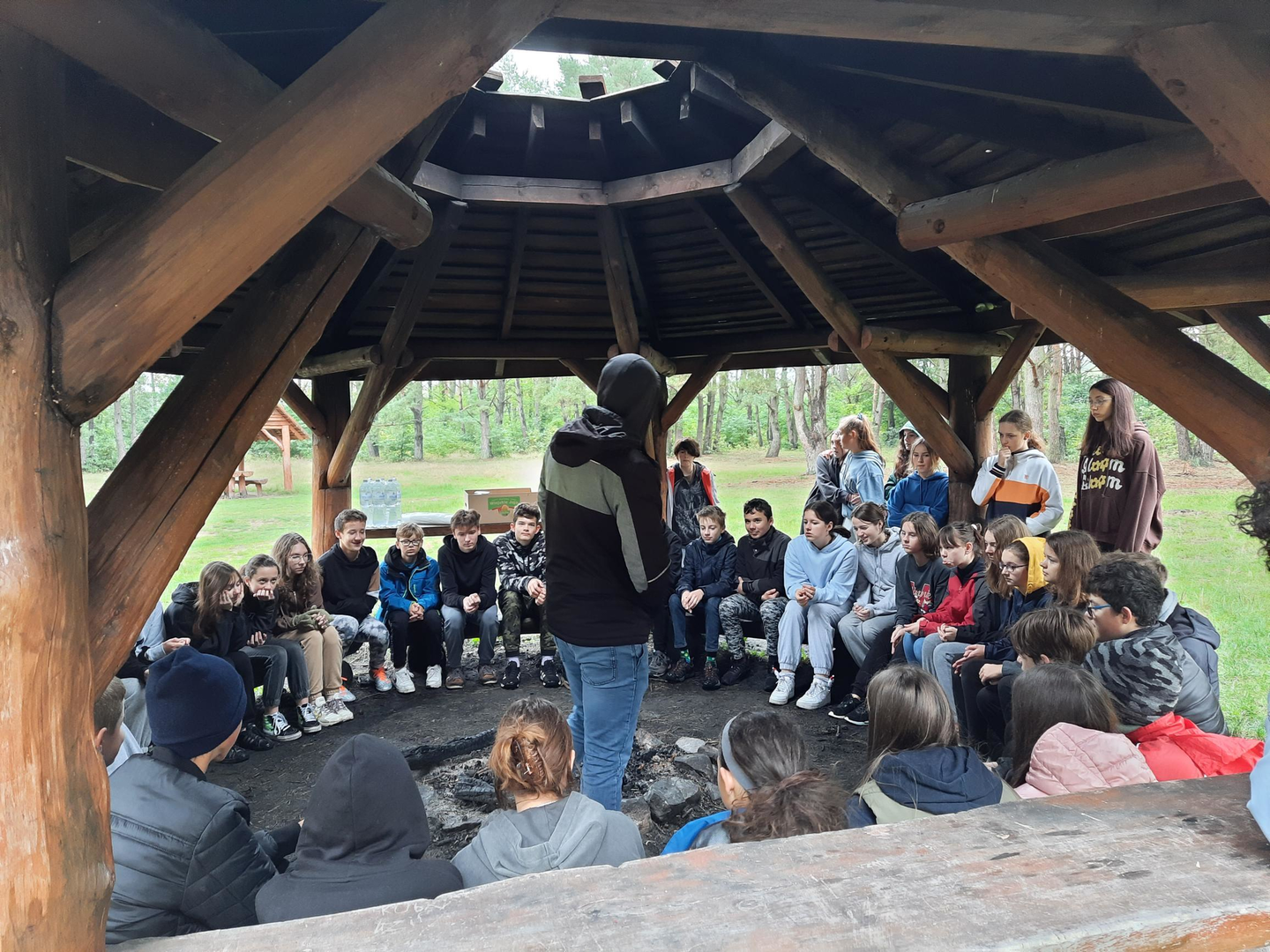Pogoda dopisywała i każdy z punktów bardzo bogatego programu udało się spędzić zgodnie z założeniami. Od gotowania przez budowanie szałasów i nocne podchody po przeróżne konkurencje sportowe, takie jak: łucznictwo, gry sprawnościowe czy Bumper Ball – wszystko zarówno i dobrze zorganizowane i bezpieczne, i uczestnicy zadowoleni. Cóż chcieć więcej! Czas był całkowicie wypełniony aktywnościami od śniadania do ciszy nocnej, na straży której staliśmy niestrudzenie. A i tak niespodziewanym dla wszystkich, nadprogramowym zadaniem ostatniego poranka było...wspólne sprzątanie korytarzyka po „gorączce zielonej nocy”. Krótko mówiąc – integracja klas na całego!