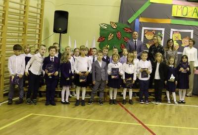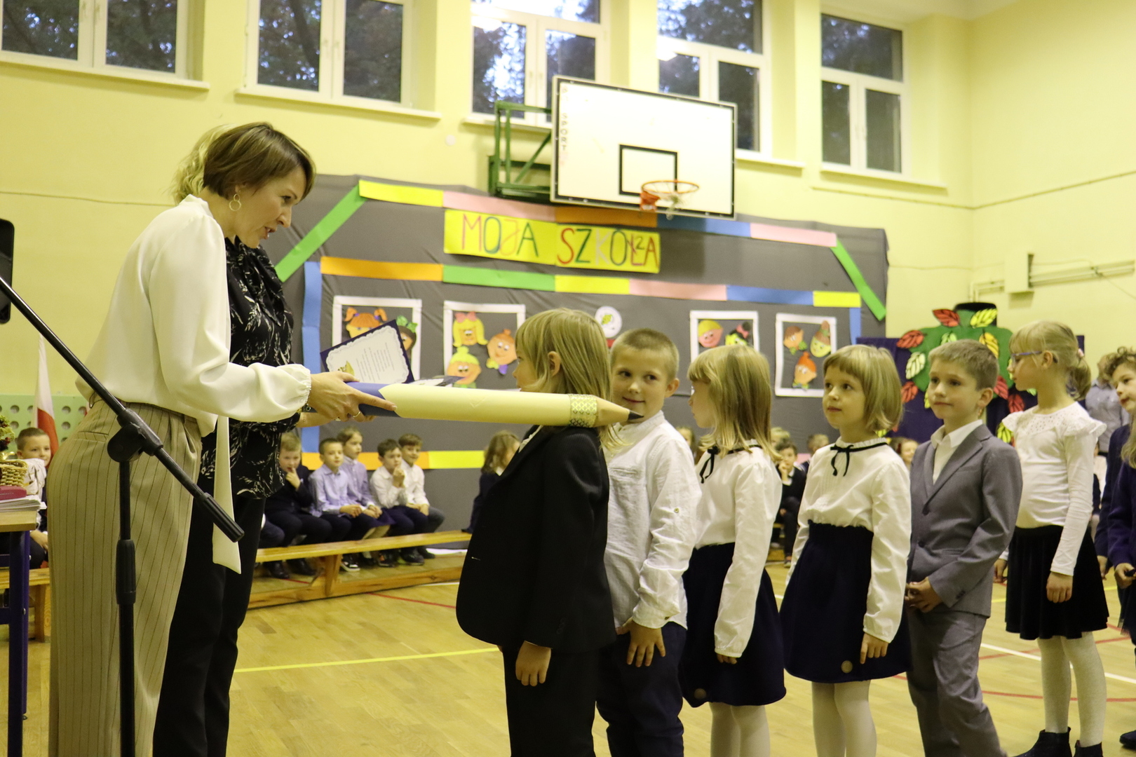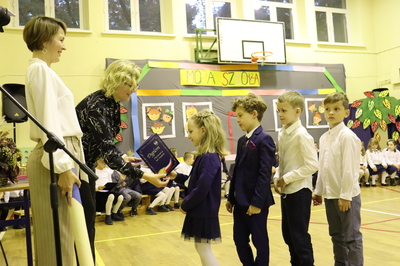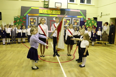 W niezwykle podniosłej atmosferze w obecności pocztu sztandarowego pierwszacy złożyli ślubowanie. Chcą być dobrymi uczniami i Polakami, przyjaciółmi roślin i zwierząt, a swym zachowaniem i nauką sprawiać radość rodzicom i nauczycielom.