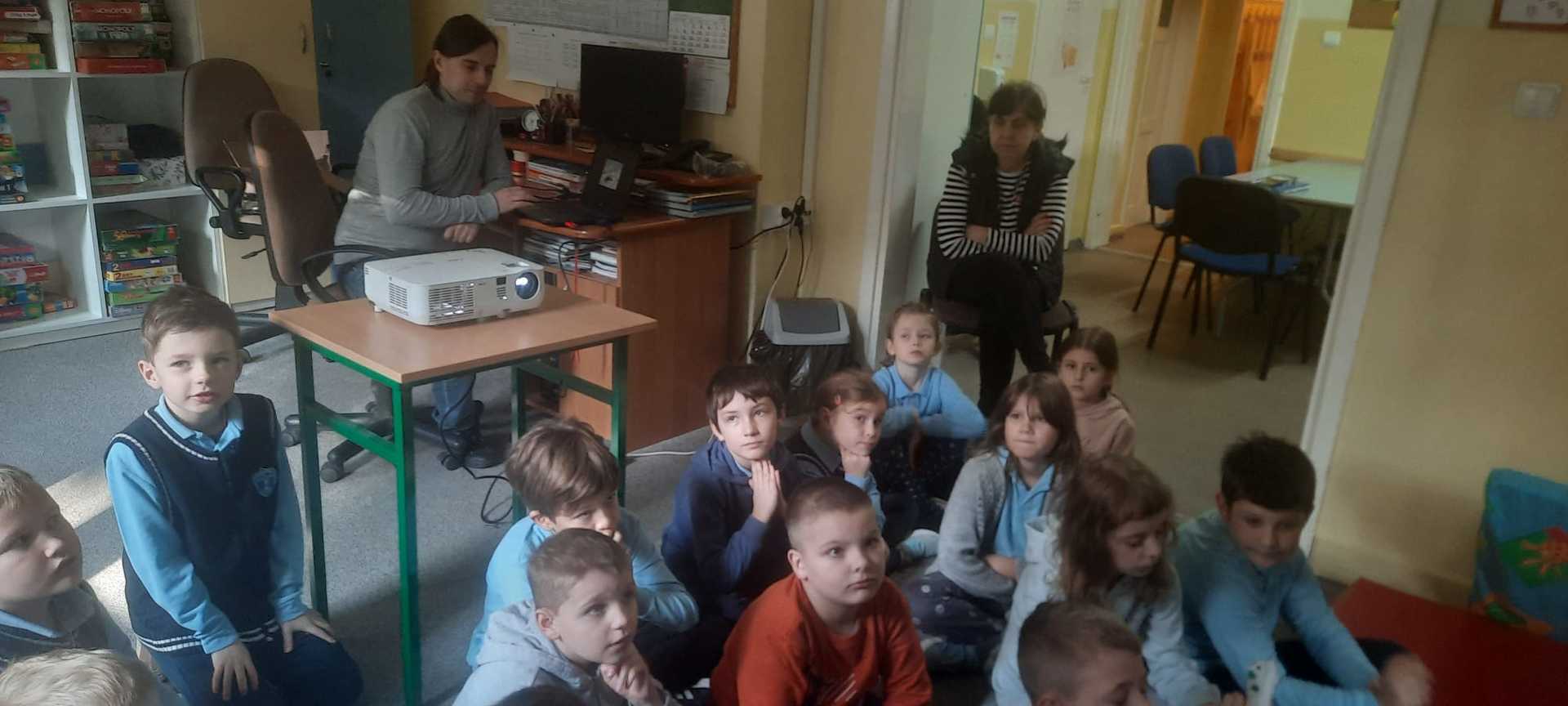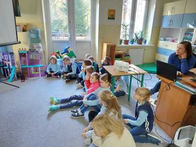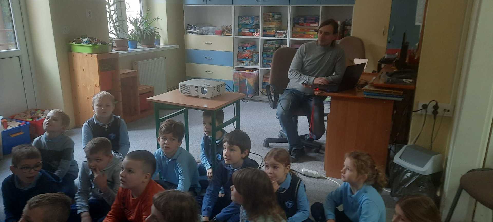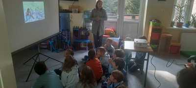 Tematem zajęć było zanieczyszczenie środowiska (wód, lądów) przez człowieka i fatalne skutki tego, jakie odczuwamy wszyscy, a szczególnie bezbronne zwierzęta. Dzieci z ogromnym zainteresowaniem słuchały p. Julitty i p. Agnieszki, oglądały slajdy i brały czynny udział w dyskusji na temat ochrony środowiska. Nasi Kochani uczniowie wykazali się dużą wrażliwością i wiedzą, co zauważyły obie panie.