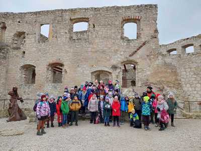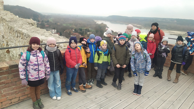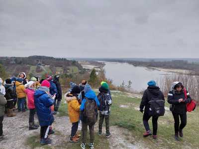 Kazimierzem Dolnym. Dzieci mogły zachwycać się panoramą miasta z góry, wieży i z ruin zamku. Podczas zwiedzania Muzeum Nadwiślańskiego uczniowie z zainteresowaniem słuchali opowieści przewodniczki podziwiając przyrodnicze okazy.