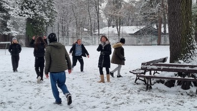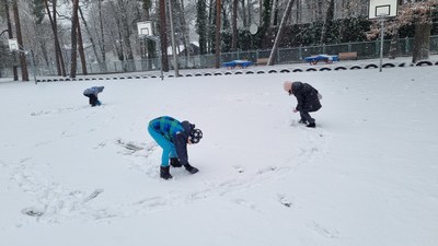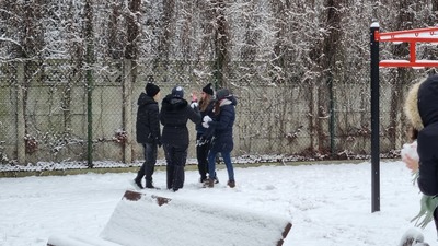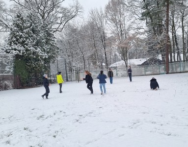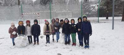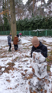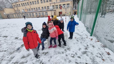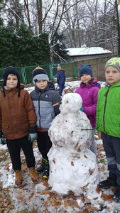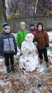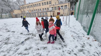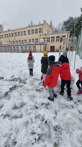 Uczniowie urządzali zawody w rzucaniu śnieżkami, a przede wszystkim lepili bałwany przypominając, ile pracy i trudu trzeba włożyli w budowanie i toczenie ogromnych kul ze śniegu.