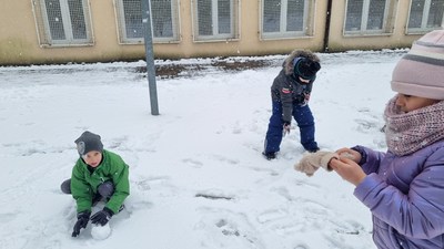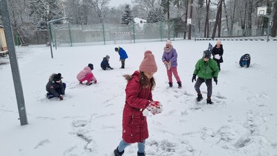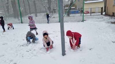 Na taką pogodę uczniowie naszej szkoły czekali bardzo długo! Spadł pierwszy śnieg i wszyscy ruszyli do zabawy białym puchem. Pod czujnym okiem nauczycieli dzieci oddały się śniegowemu szaleństwu. Zimowym zabawom nie było końca.