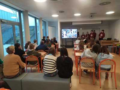Spotkanie, w którym braliśmy udział prowadzone było w języku angielskim. Nasi uczniowie mieli możliwość zadania pytania.