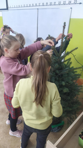 W muzeum uczniowie uczestniczyli w warsztatach, podczas których przygotowali piękne ozdoby choinkowe. W kinie dzieci oglądały bajkę pt.: „Świąteczna niespodzianka”. Ciepły, mądry, wzruszający film o spełnianiu marzeń i sile, jaką daje rodzina.