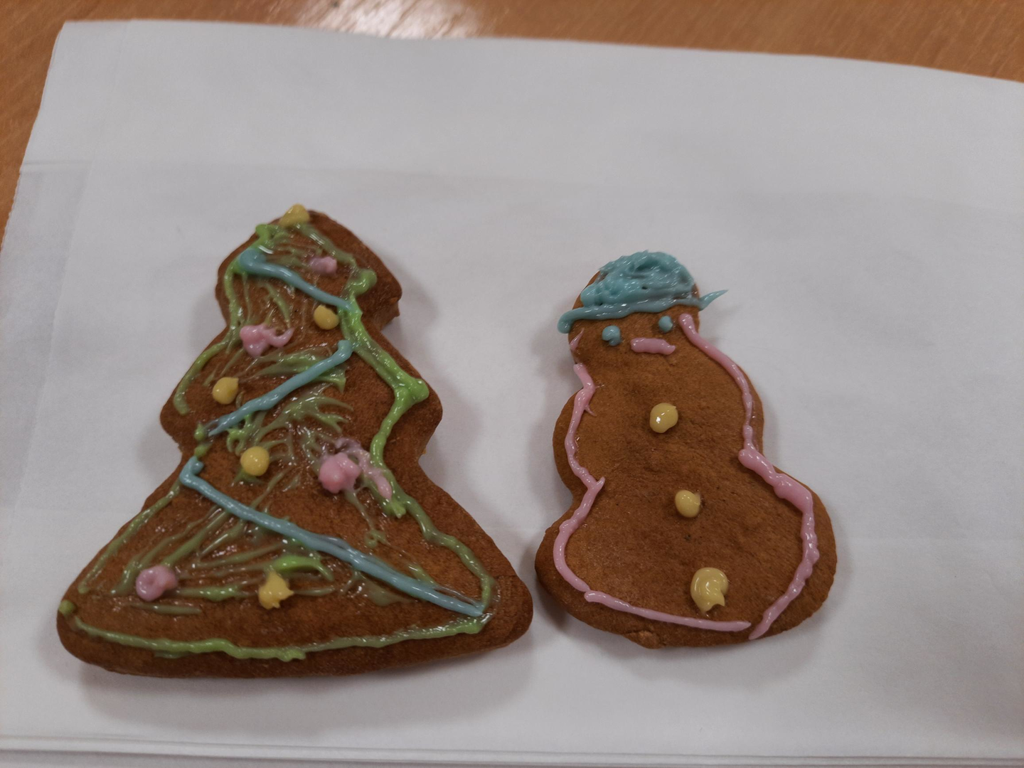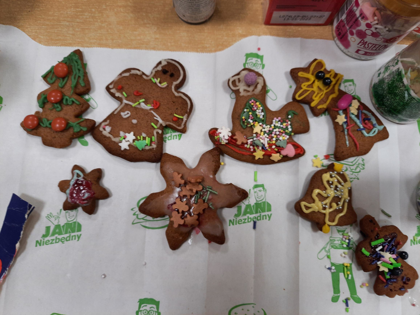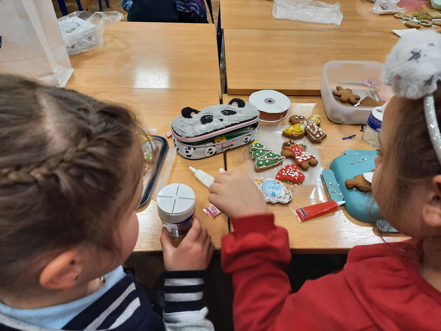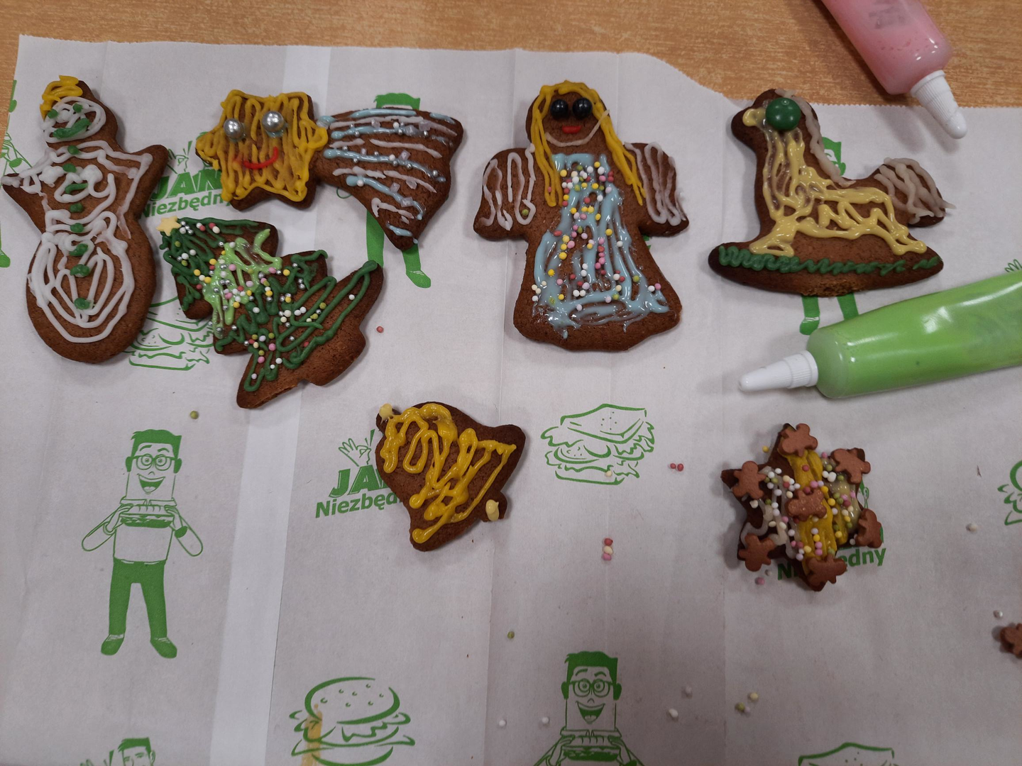 Uczniowie uczestniczący w zajęciach koła plastycznego postanowili w okresie przedświątecznym przygotować pierniczki.