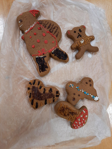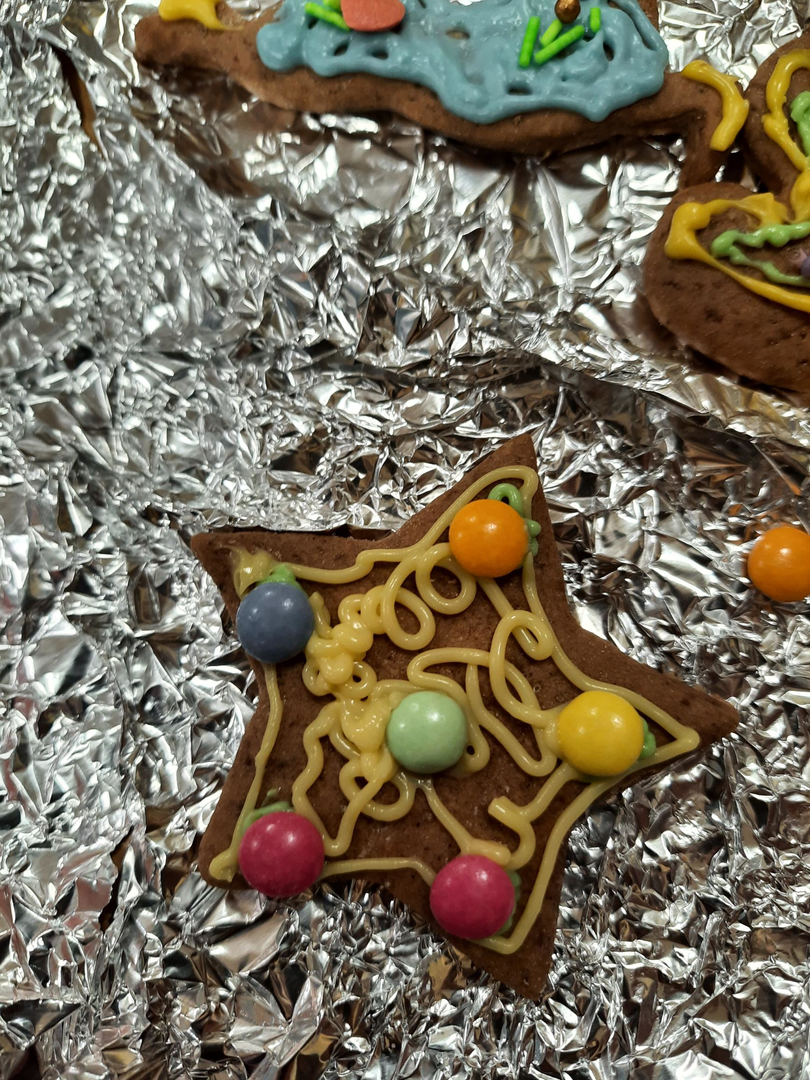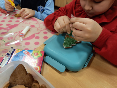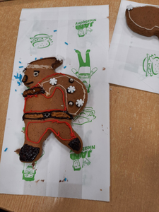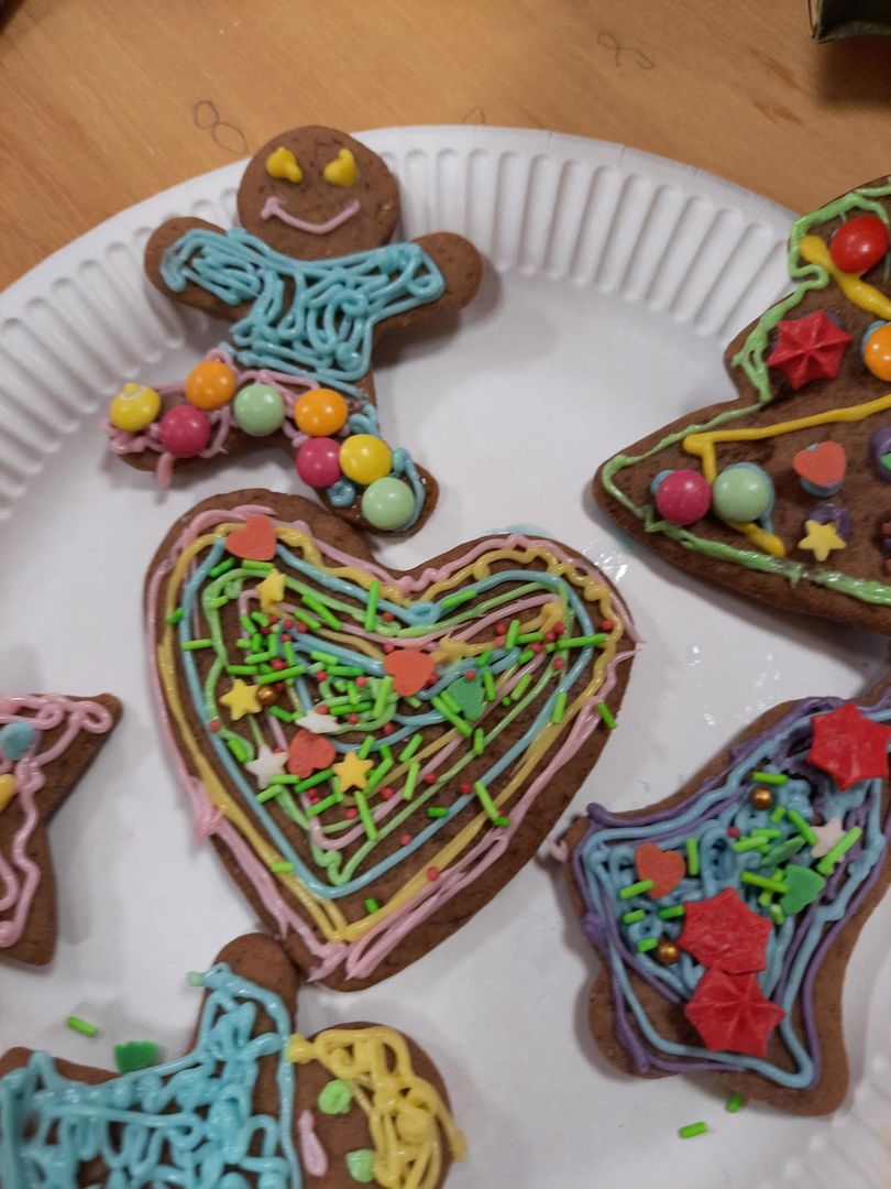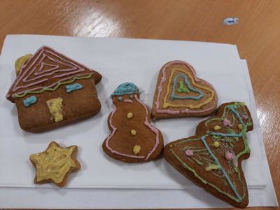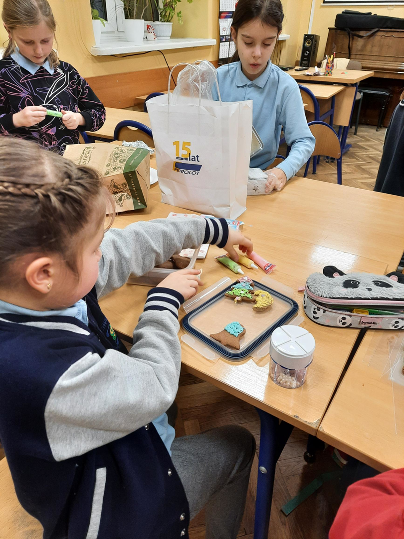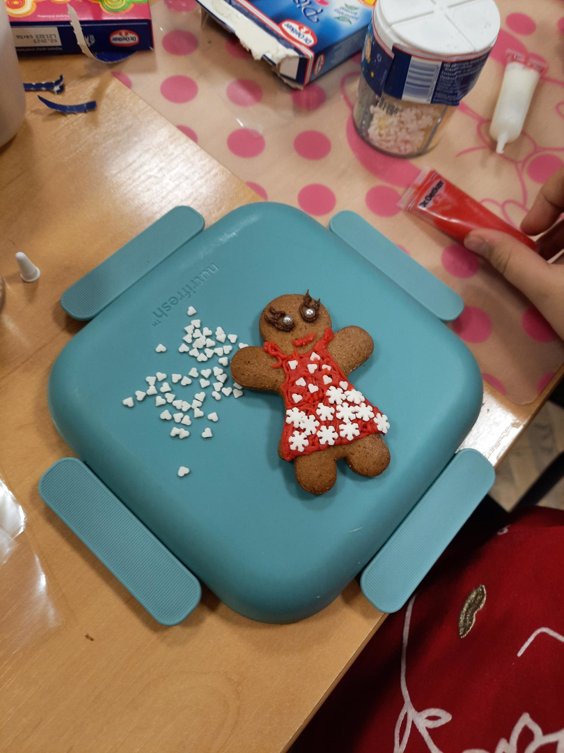 Uczniowie uczestniczący w zajęciach koła plastycznego postanowili w okresie przedświątecznym przygotować pierniczki.