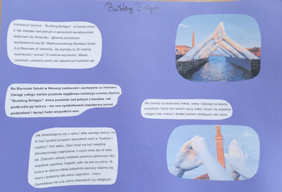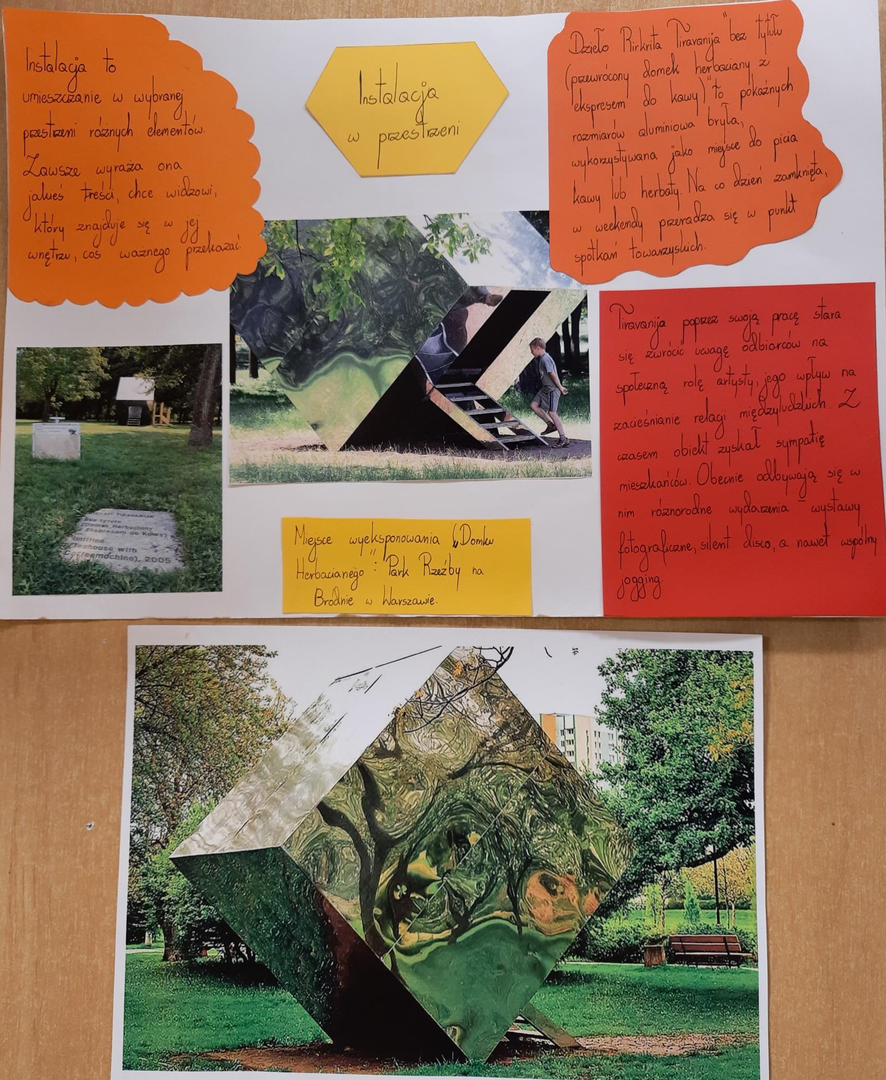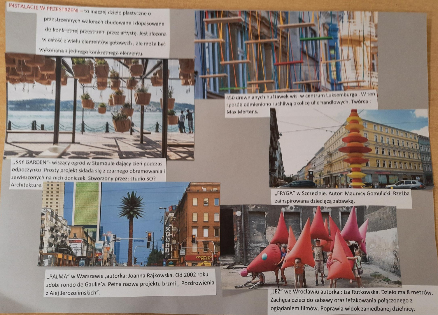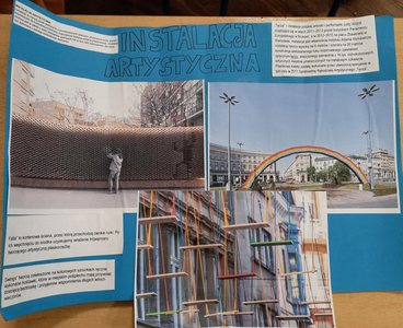 Uczniowie klasy 5b na lekcjach plastyki omawiali, czym są instalacje artystyczne i prezentowali najciekawsze z nich.
