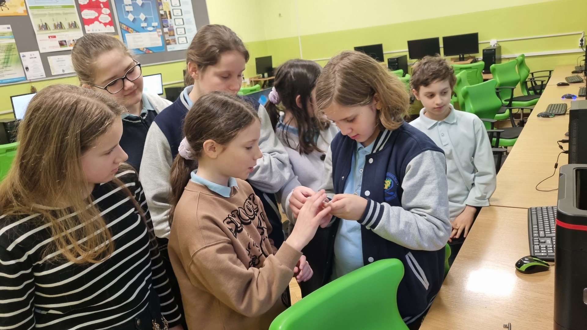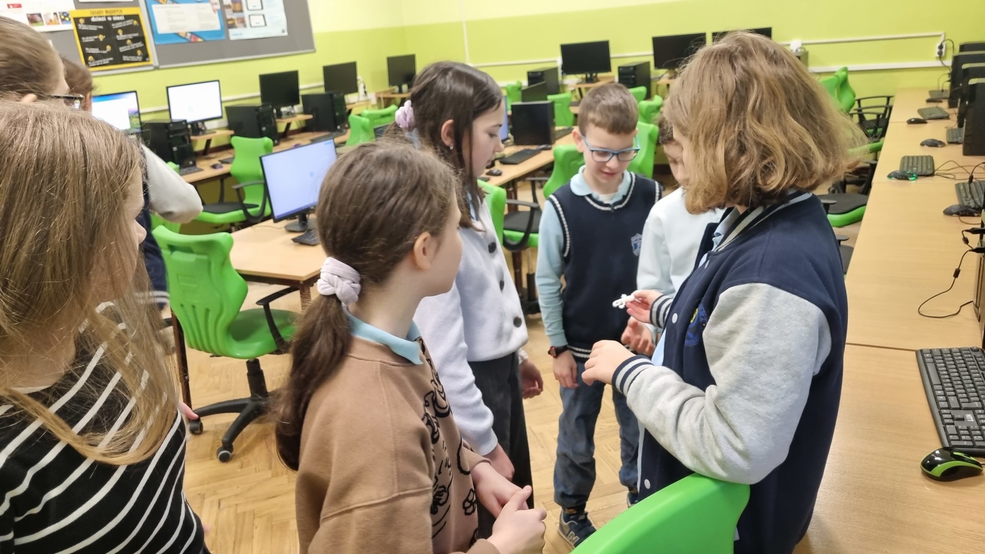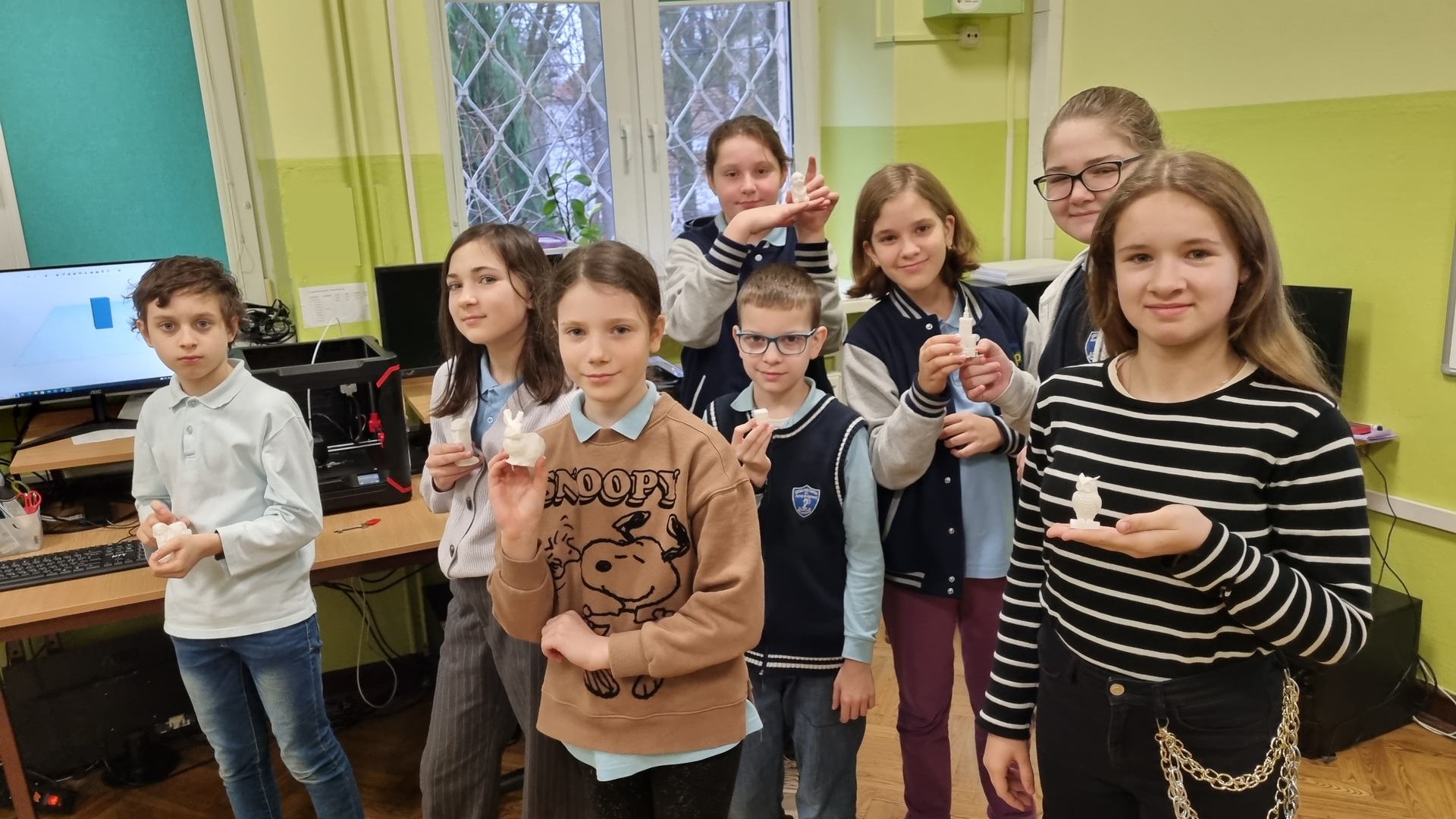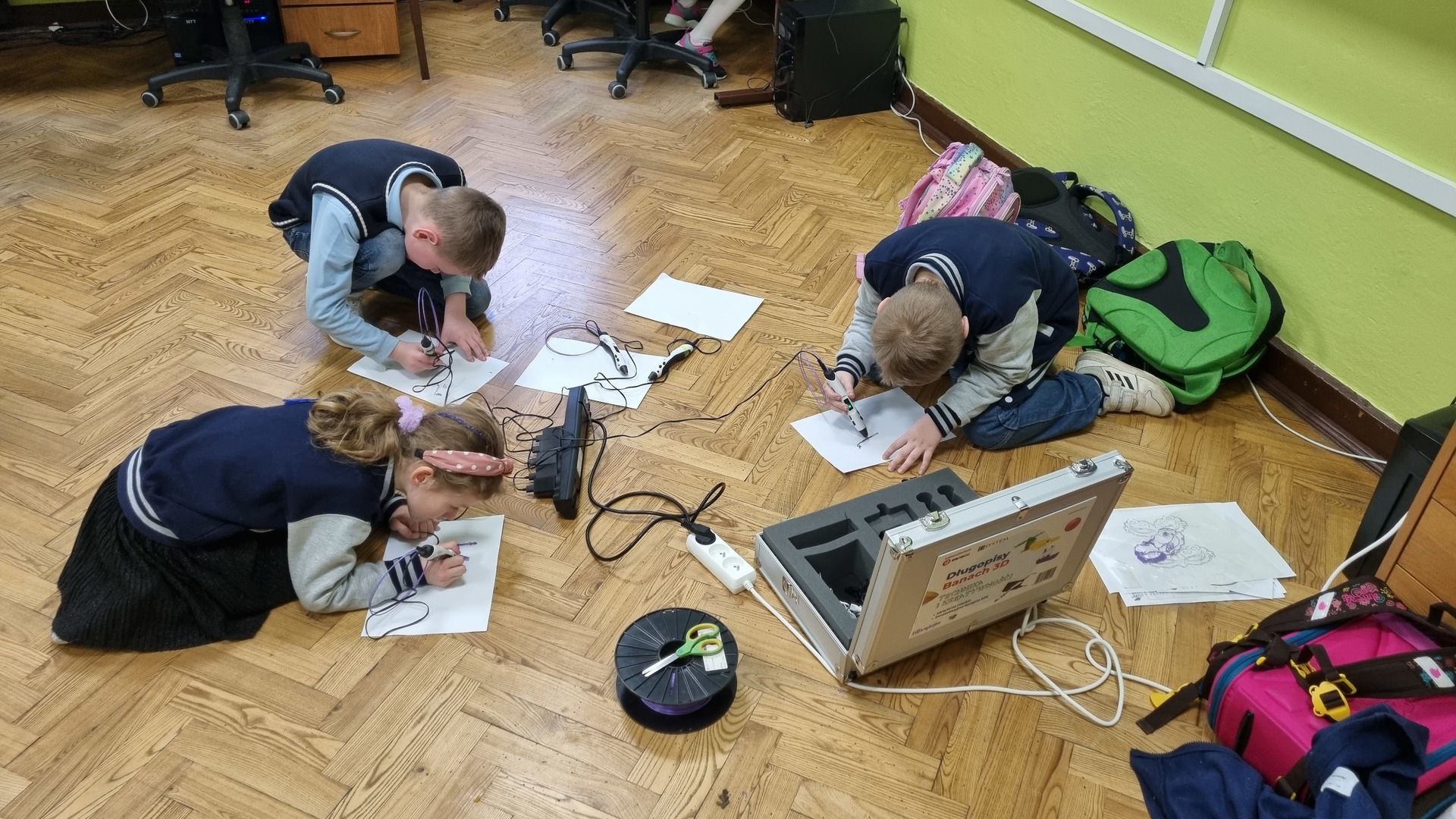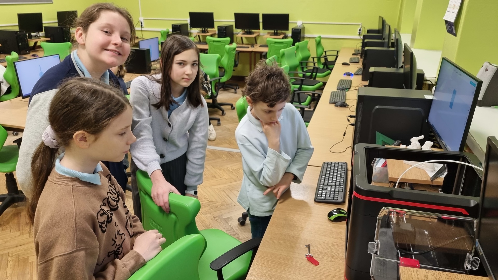 Uczniowie na zajęciach informatyki obserwowali, jak działa drukarka 3D oraz w jaki sposób drukuje się na niej przedmioty. W czasie zajęć drukowane były małe rekwizyty np. breloczki, figury zwierząt, kostki do gry, ponieważ ich druk przebiega stosunkowo szybko.