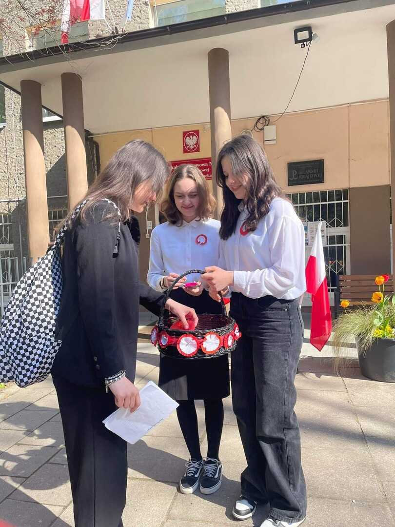 Z okazji uchwalenia Konstytucji 3 Maja Samorząd Szkolny naszej szkoły zaangażował społeczność szkolną, w tym uczniów i nauczycieli do wykonania kotylionów, które następnie były rozdawane uczniom przed zajęciami szkolnymi w ostatni piątek kwietnia.