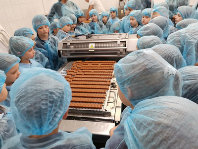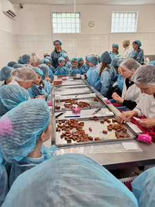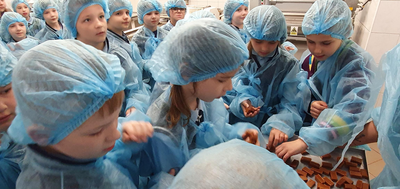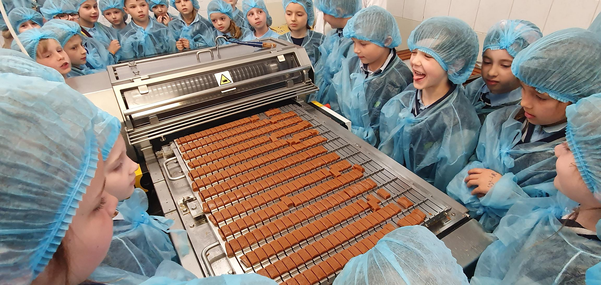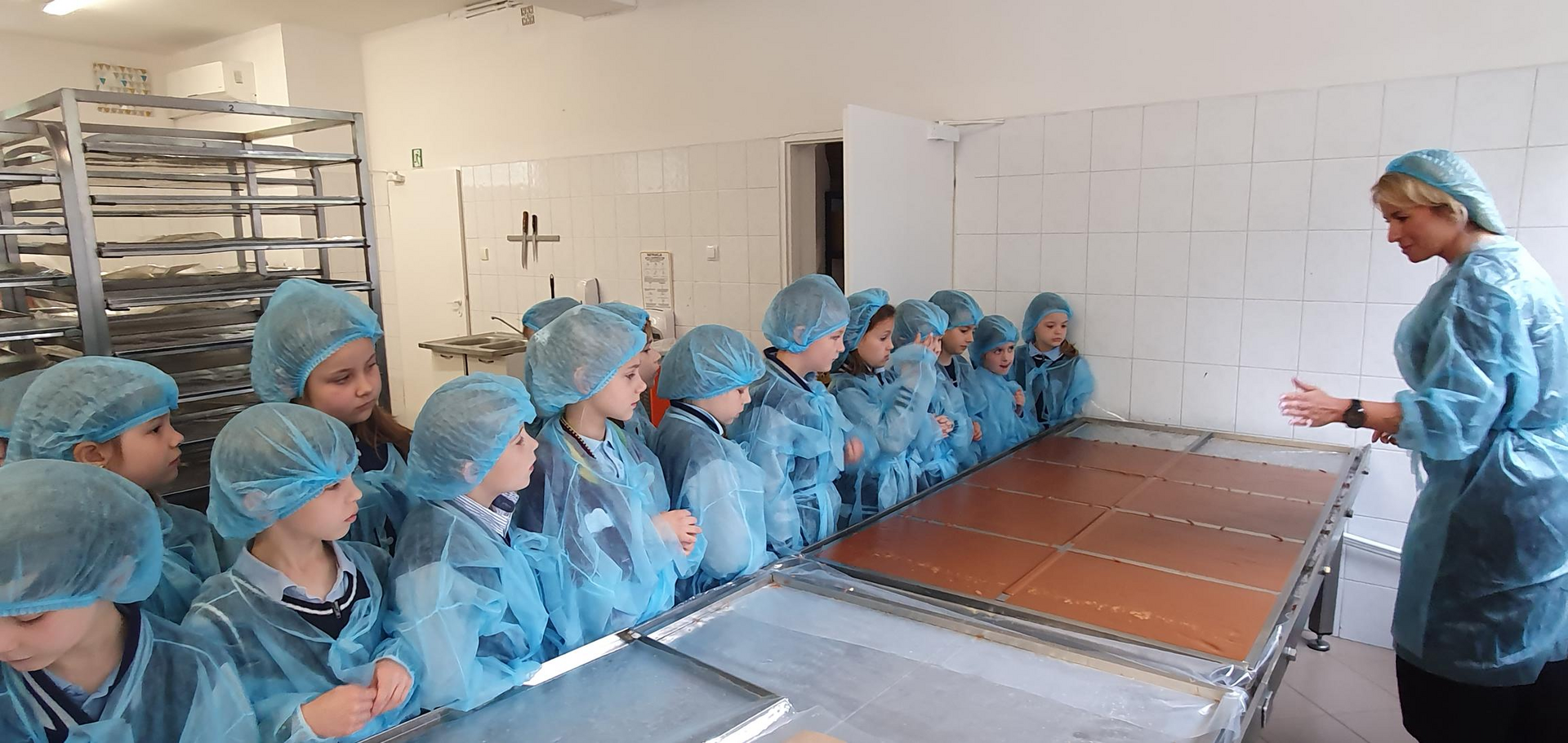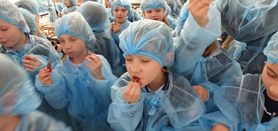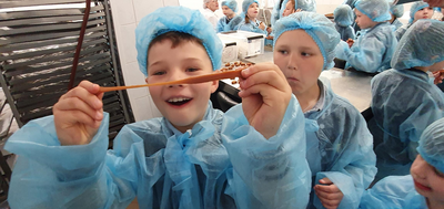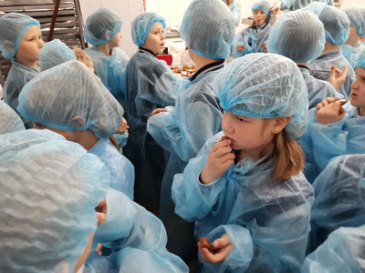 Zwiedzając zakład produkcyjny - odpowiednio ubrane - miały okazję obserwować pełen proces przygotowywania tych słodkości i spróbowania świeżutkich cukierków prosto z produkcji.
