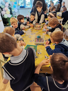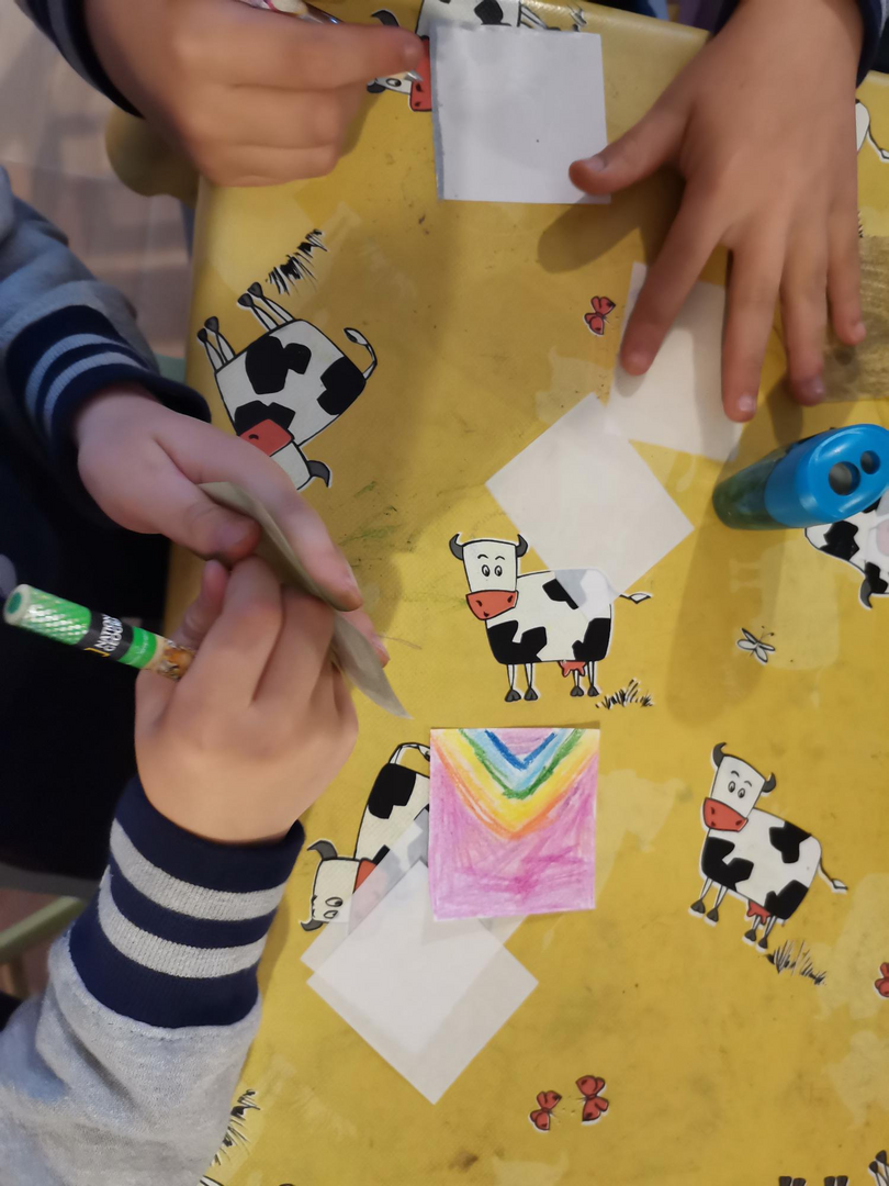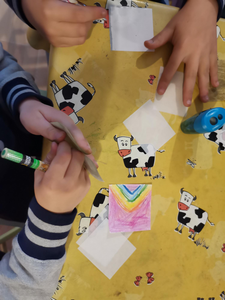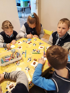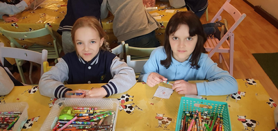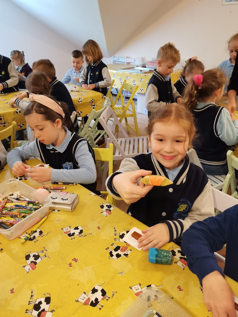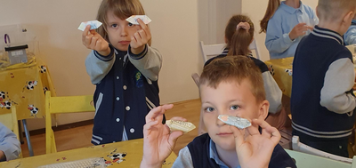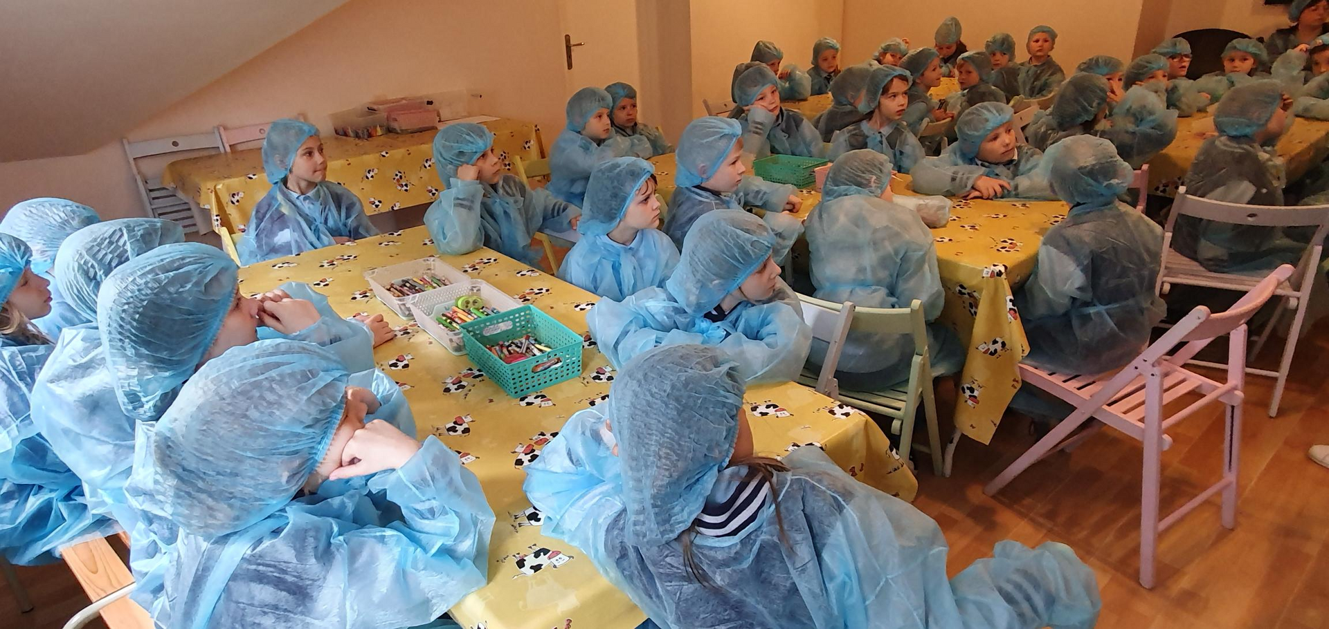 Podczas warsztatów plastycznych projektowały własne kolorowe etykietki oraz nauczyły się samodzielnie zawijać krówki. Każde dziecko otrzymało na koniec małą paczuszkę z krówkami na drogę.