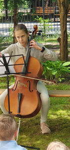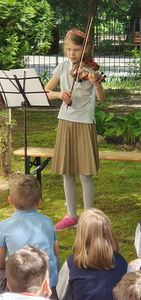 Franciszek, Gloria, Weronika i Maksymilian zaprezentowali utwory muzyczne na swoich instrumentach.
