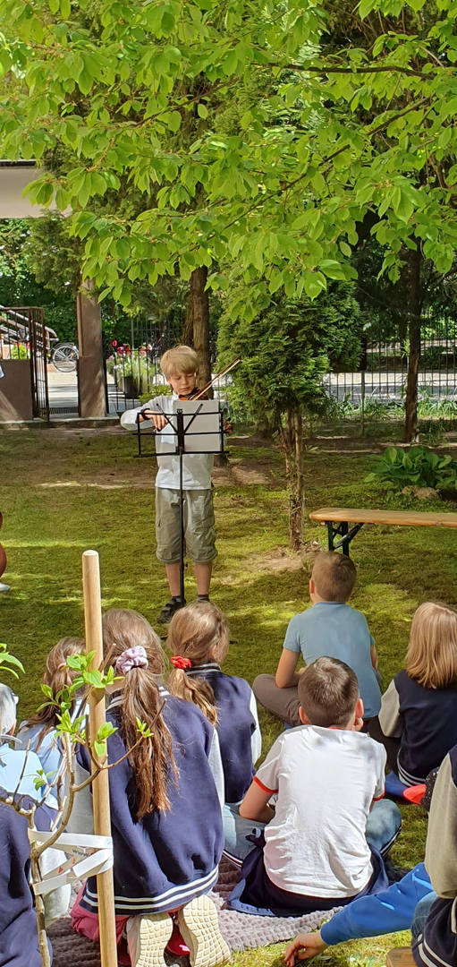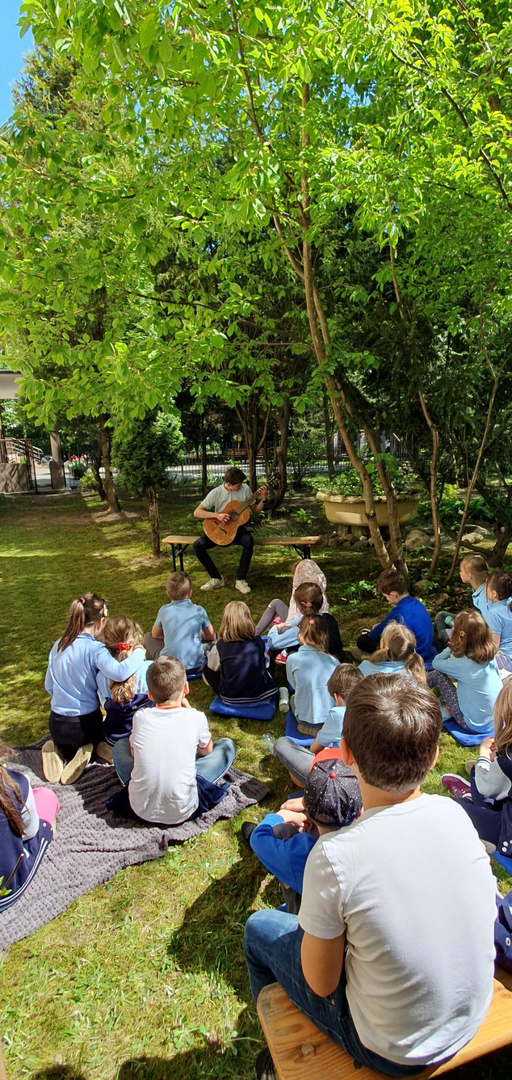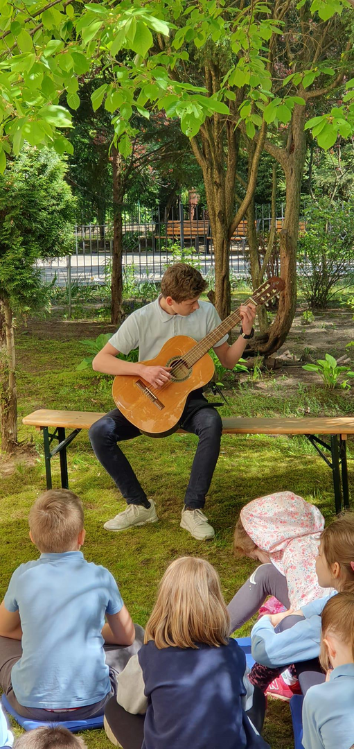 Na jedno z ostatnich zajęć koła muzycznego nauczycielka Danuta Rusinowicz zaprosiła umuzykalnione rodzeństwo Marzyńskich uczniów naszej szkoły, którzy uczęszczają do Państwowej Szkoły Muzycznej w Grodzisku Mazowieckim.