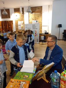 W dniu 14 czerwca uczniowie naszej szkoły uczestniczyli w spotkaniach autorskich z panem Marcinem Koziołem.