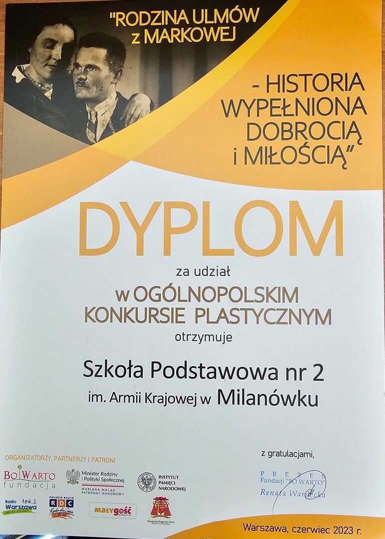 We wtorek, 20 czerwca 2023 roku w budynku Centralny Przystanek Historia IPN odbyła się gala laureatów konkursu plastycznego pt. „RODZINA ULMÓW Z MARKOWEJ – HISTORIA WYPEŁNIONA DOBROCIĄ I MIŁOŚCIĄ”. Wyłoniono 37 laureatów spośród 507 prac nadesłanych ze 140 placówek do oceny.