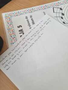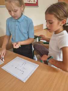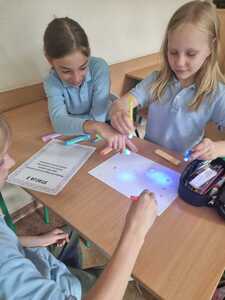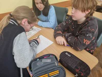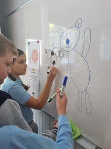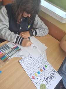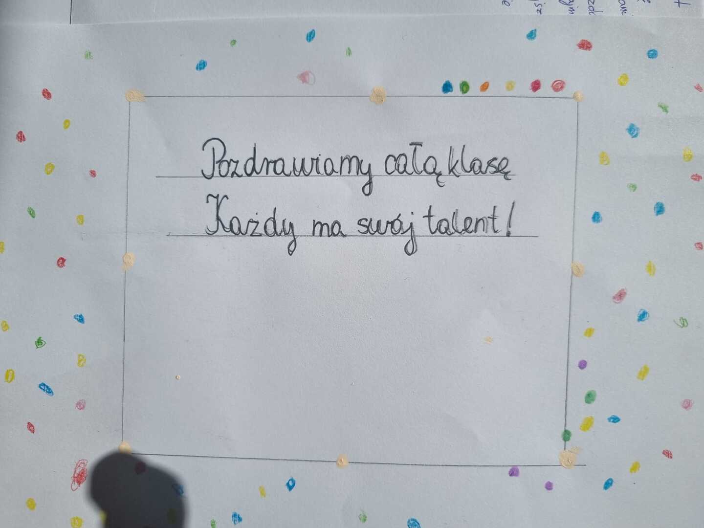 Uczniowie poszukiwali też kropek, tworzyli własne piosenki, uzupełniali frazeologizmy. Powstały kartki z serdecznymi pozdrowieniami oraz kolorowe „Kropersy”. Już wiemy, że każdy ma swój talent.