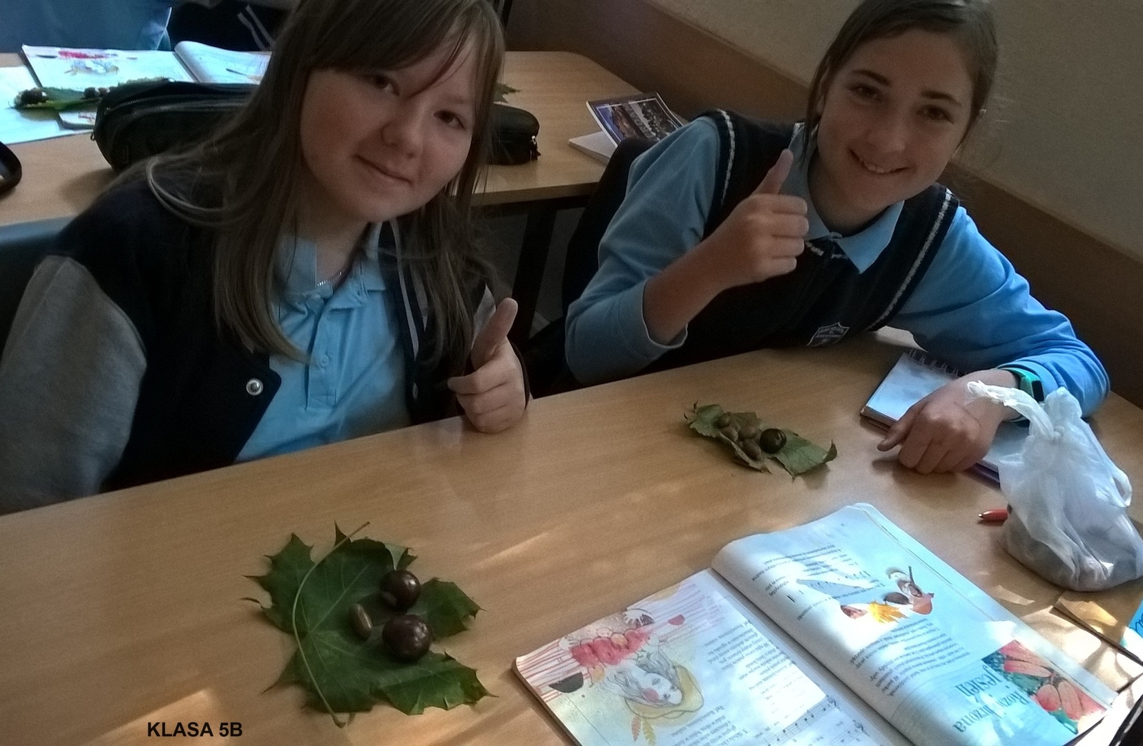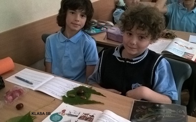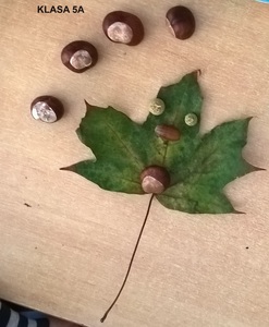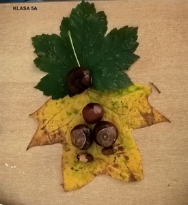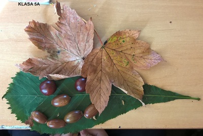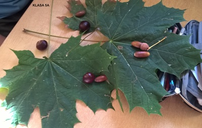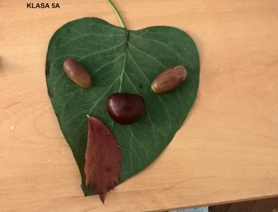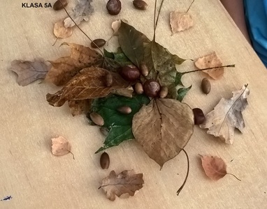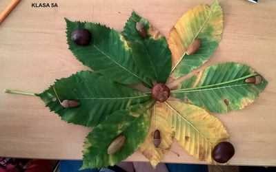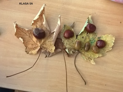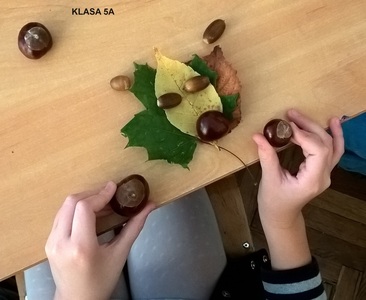 Uczennice i uczniowie klas 5 na lekcji muzyki podjęli temat „Jesienne kompozycje nie tylko muzyczne”. Podczas zajęć piątoklasiści zaśpiewali piosenkę „Rozwichrzona jesień”, zagrali schemat rytmiczny z piosenki na kasztanach, żołędziach i liściach, dowiedzieli się, co to jest kompozycja i kim jest kompozytor. Następnie stworzyli „rozwichrzone” kompozycje plastyczne z darów jesieni.