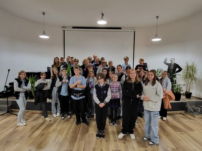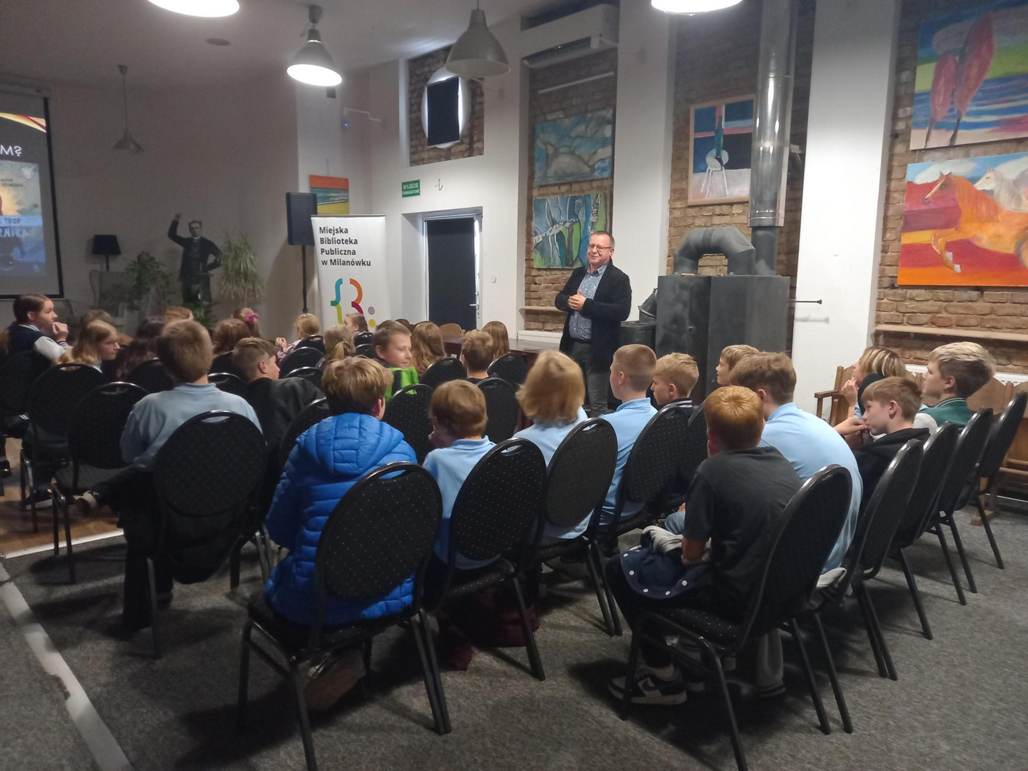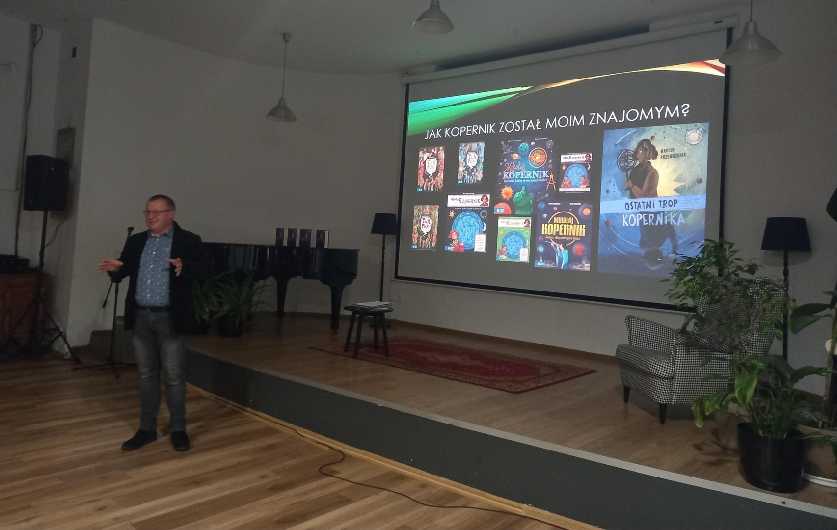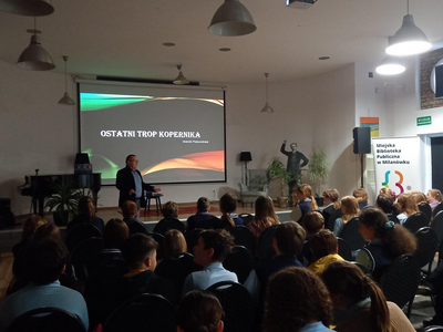 Z tej okazji, na zaproszenie Miejskiej Biblioteki Publicznej w Milanówku, klasy 6a, 6b i 7b wzięły dziś udział w spotkaniu z Panem Marcinem Przewoźniakiem autorem książki dla młodzieży pt. "Ostatni trop Kopernika", które odbyło się w Miejskim Centrum Kultury. Autor przekazał uczniom dużo wiedzy o sławnym piętnastowiecznym astronomie.