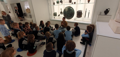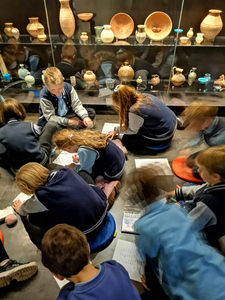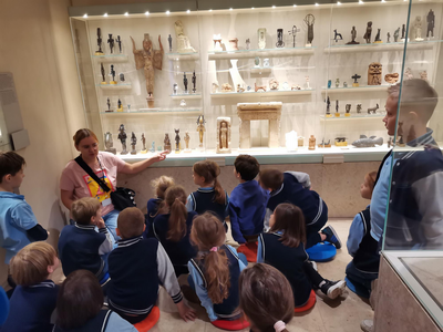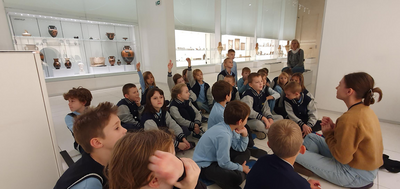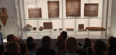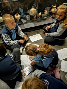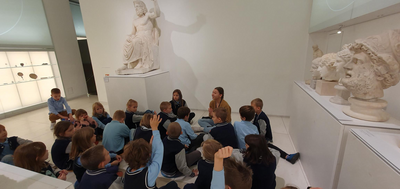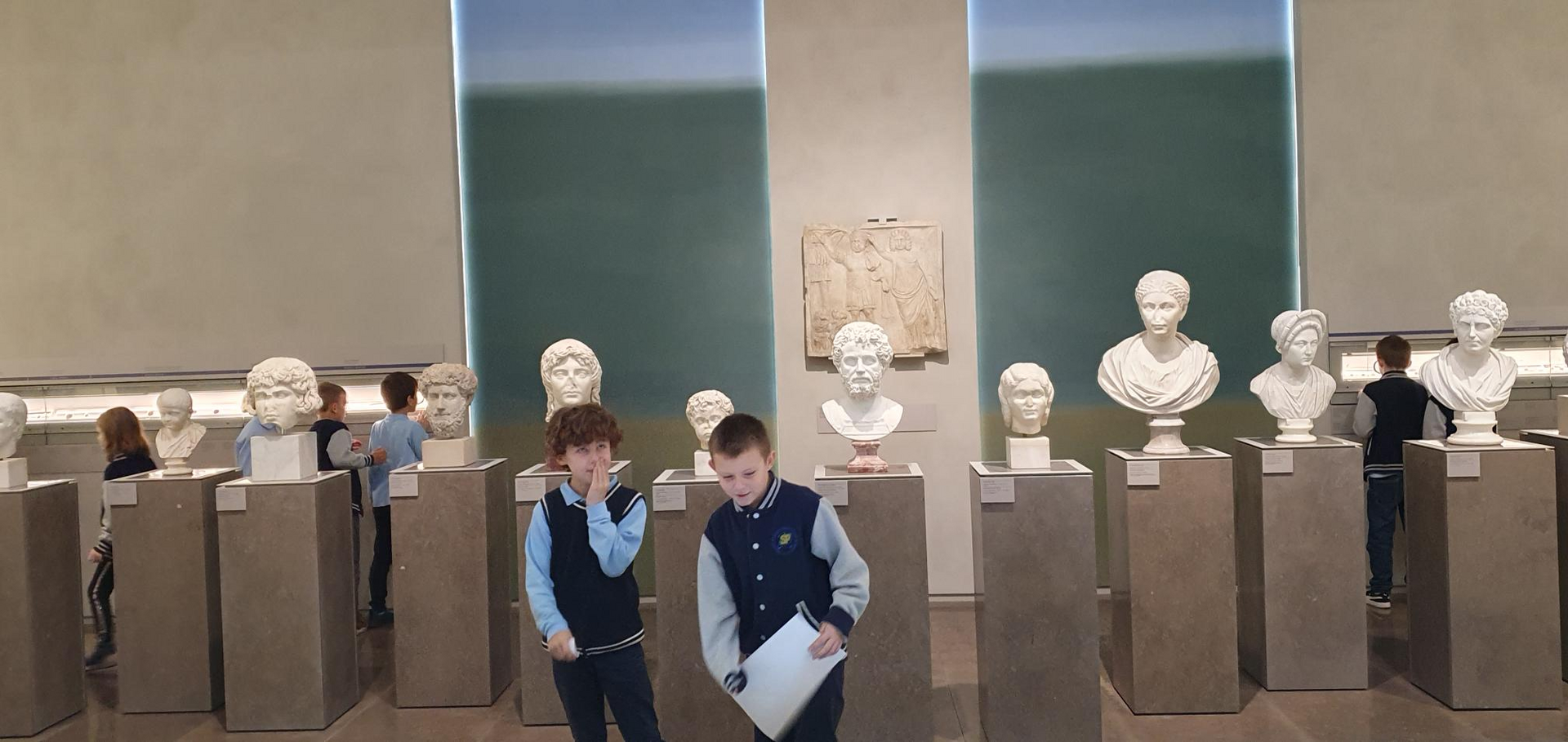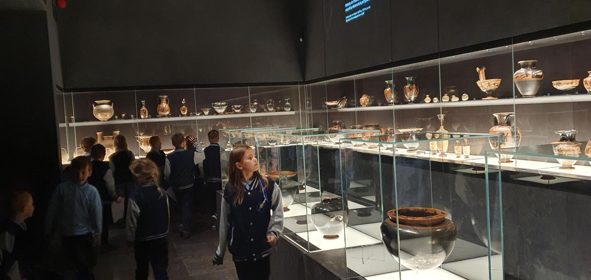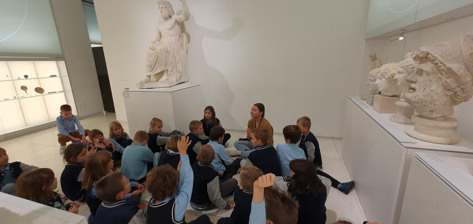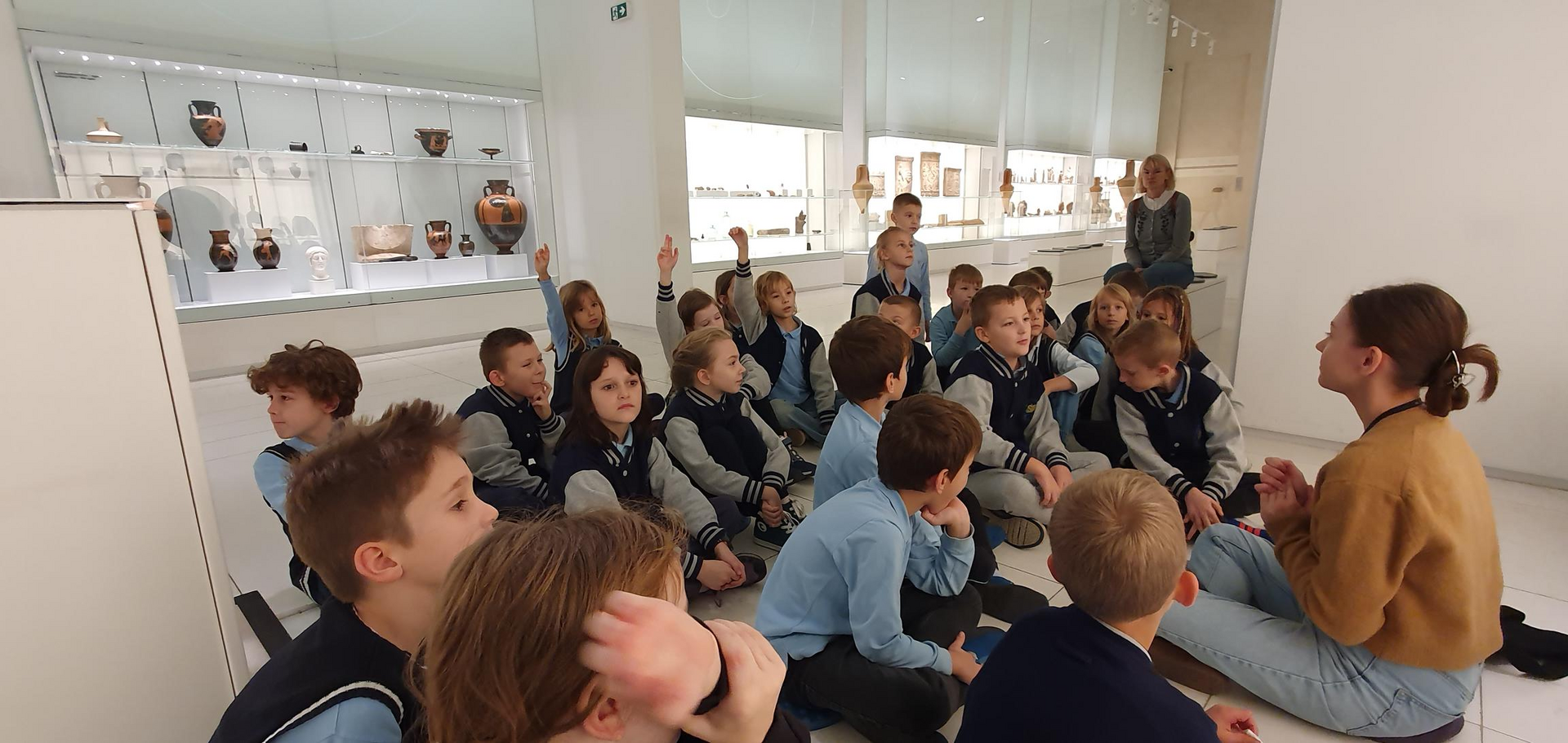 Uczniowie 2a uczestniczyli w zajęciach: „Wyprawa na Olimp". Ilustracją dla greckich opowieści były marmurowe posągi i malowidła na wazach. Podczas wyprawy do siedziby bogów dzieci spotkały Zeusa, Heraklesa, Afrodytę i Atenę. Poznały najciekawsze mity greckie i obejrzały eksponaty związane z lekcją.