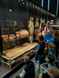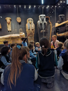 Uczniowie 2b uczestniczyli w zajęciach: „Tajemnice mumii”. Dowiedzieli się, dlaczego w starożytnym Egipcie robiono mumie? Czym były sarkofag i kartonaż? Ile bandaży zużywano do owinięcia jednej mumii? Poznali mit o Ozyrysie i zwiedzili jego królestwo.