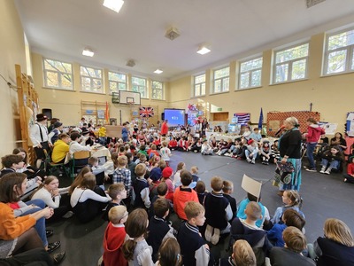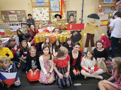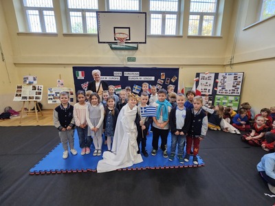 Podczas spotkania w dniu 30 października 2023 r. poznawaliśmy kulturę i zwyczaje m. in. Czech, Wielkiej Brytanii, Hiszpanii czy Austrii. Dowiedzieliśmy się wielu informacji na temat naszych europejskich sąsiadów, tych bliższych i tych dalszych. Wspólnie bawiliśmy się, śpiewając piosenki czy oglądając żywe obrazy. Mogliśmy podziwiać talenty plastyczne, wokalne oraz taneczne uczniów naszej szkoły.