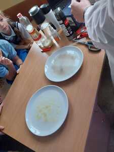 Bardzo serdecznie dziękujemy pani Ani Karpowicz mamie Antka za ciekawą lekcje chemii, a widząc reakcje dzieci sądzimy, że na lekcje chemii czekają już z niecierpliwością.