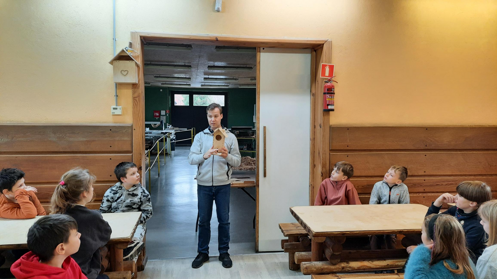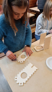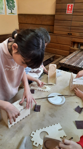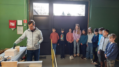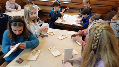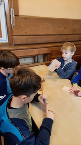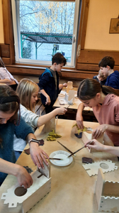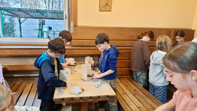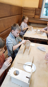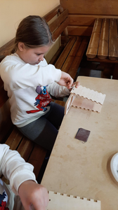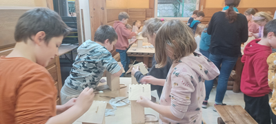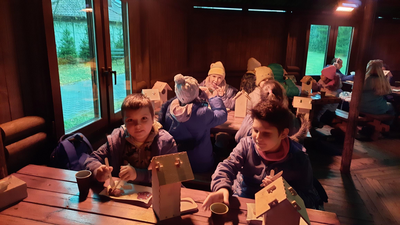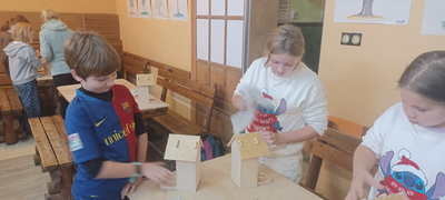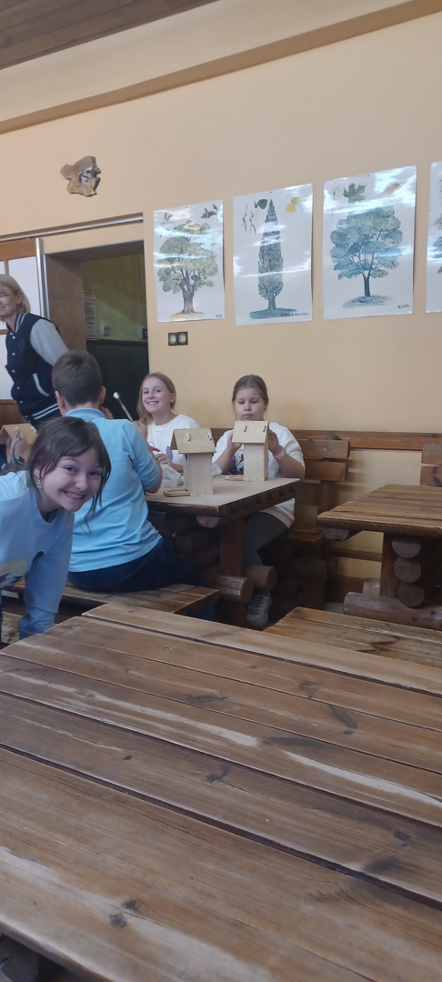 Klasy 4a i 4b brały udział w warsztatach stolarskich. Uczniowie samodzielnie wykonali karmniki, poszerzyli swoją wiedzę o drewnie i sposobach jego obróbki. Na koniec zjedliśmy pyszne kiełbaski z rożna i zakupiliśmy drewniane pamiątki, które będą przypominać mile spędzony czas na wycieczce.