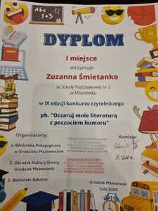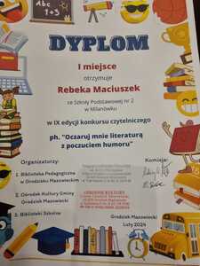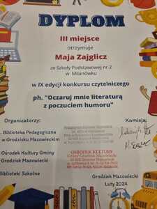 W tym roku szkolnym uczniowie naszej szkoły wzięli po raz kolejny udział w powiatowym konkursie "Oczaruj mnie literaturą z poczuciem humoru" organizowanym przez Bibliotekę Pedagogiczną w Grodzisku Mazowieckim.