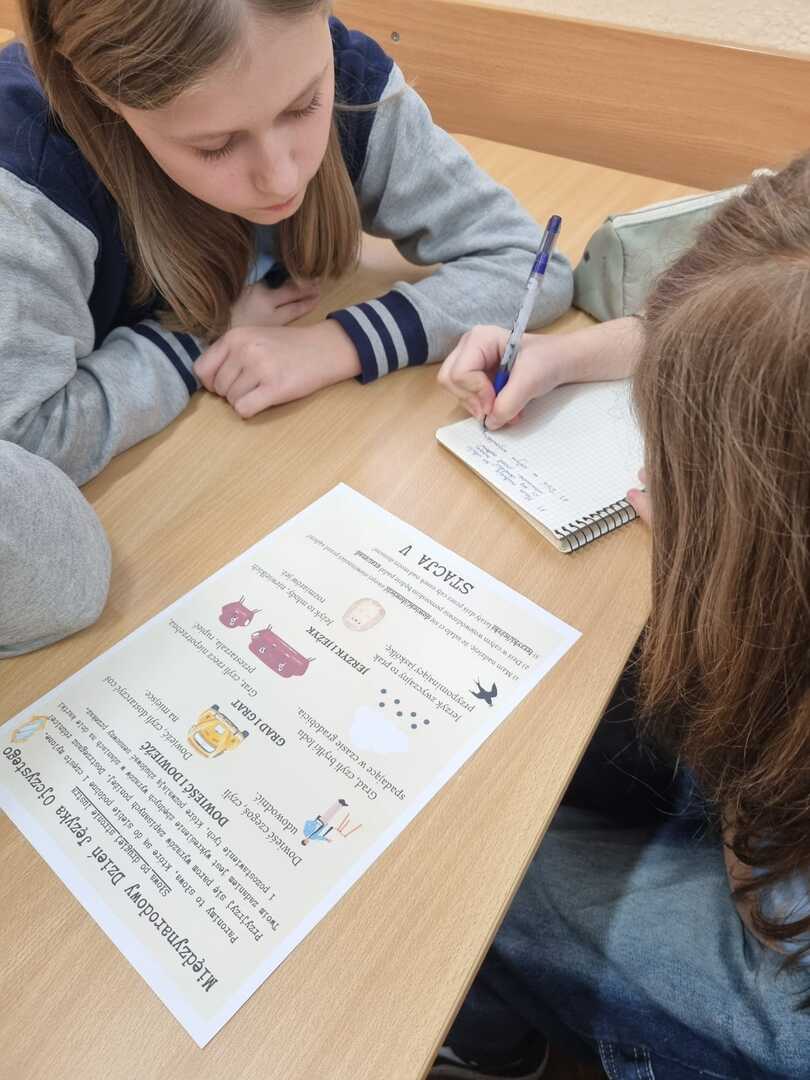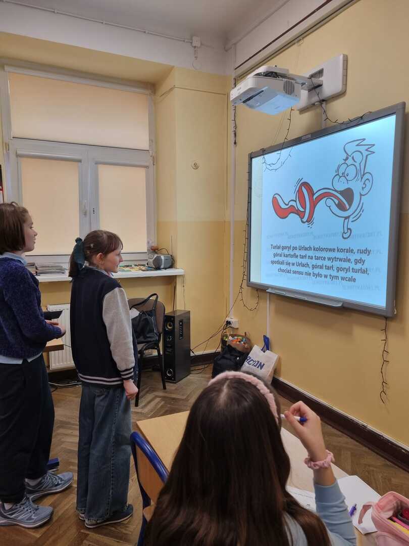 W ostatnich dniach lutego na lekcjach języka polskiego obchodziliśmy Dzień Języka Ojczystego. Z tej okazji uczniowie wzięli udział w zajęciach, w trakcie których uczyli się i bawili, analizując frazeologizmy, powtarzając przysłowia czy próbując bezbłędnie przeczytać „łamańce” językowe. Duże zainteresowanie wzbudziły wyrazy zaczerpnięte z gwary oraz ciekawostki językowe.