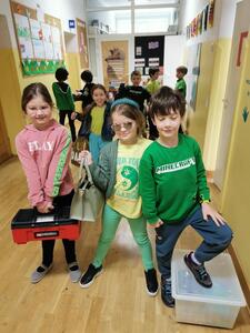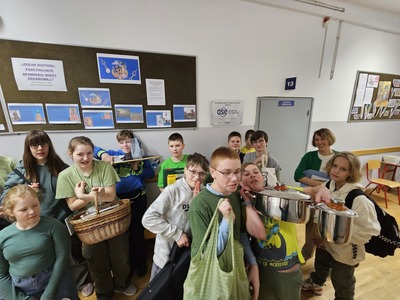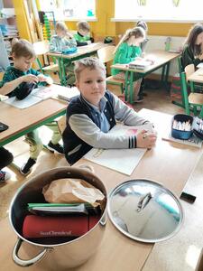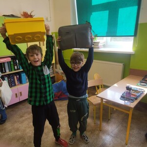 Ponadto dzień ten był również “dniem bez plecaka” - uczniowie przenieśli do szkoły podręczniki i zeszyty, tak jak zawsze, ale nie mogli ich zapakować w plecaki czy tornistry. Każdy miał zadanie wymyślić własne “nosidło”, które skutecznie zastąpi szkolny plecak (walizki, worki, ganki, koszyki itp.). Uczniowie wykazali się dużą kreatywnością i inwencją twórczą oraz poczuciem humoru.