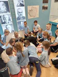Klasa 1a wraz z panią Wiesławą udała się na lekcję muzealną pt. "Śledztwo w sprawie Orła".