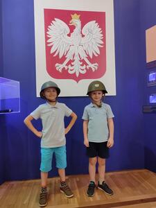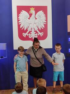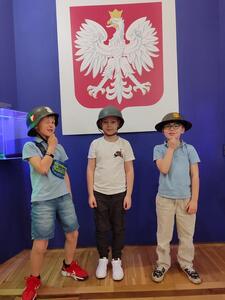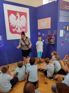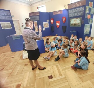 Uczniowie szukając śladów orła na herbach, pieczęciach , tarczach i mieczach mogli zobaczyć jakie formy przybierał na przestrzeni wieków. Podążając tym tropem dzieci odkryły jak doszło do tego, że orzeł stał się godłem Polski. Ciekawe opowieści pani przewodnik o Lechu, Czechu i Rusie urozmaiciły lekcję muzealną i zaciekawiły najmłodszych. Pod koniec każdy uczestnik mógł przymierzyć hełm.