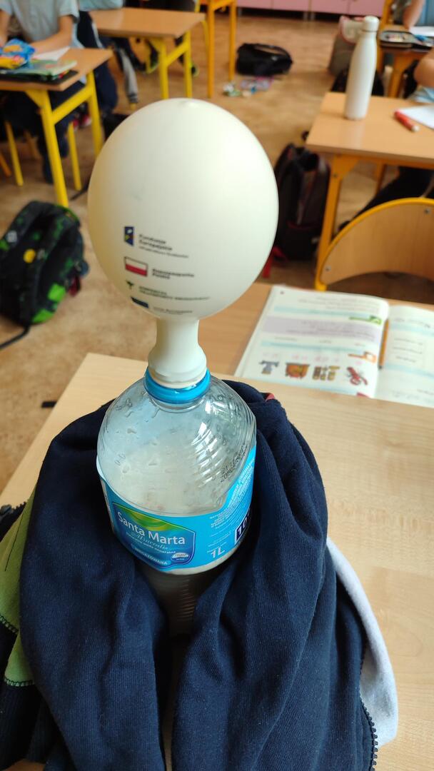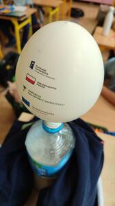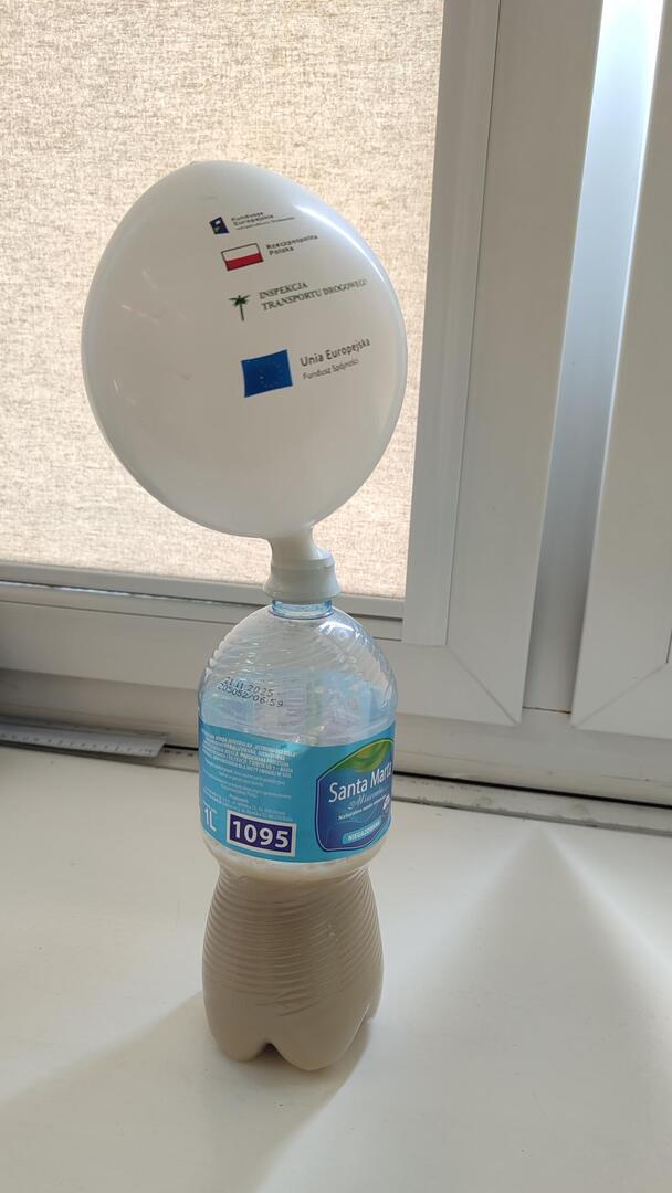 Dzięki połączeniu składników wytworzył się w butelce dwutlenek węgla i balon nałożony na szyjkę flakonu napompował się 🙂