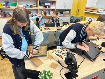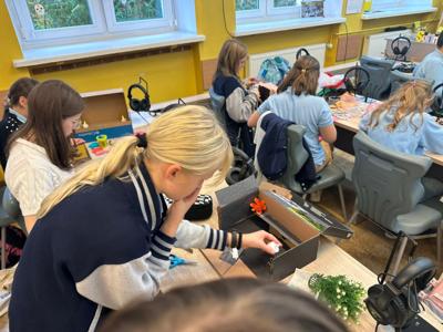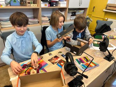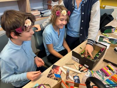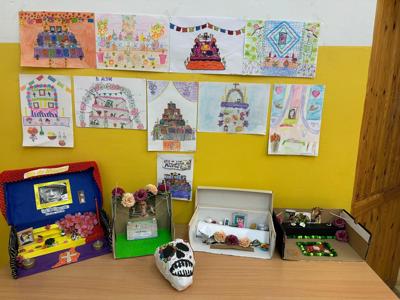 W ramach lekcji języka hiszpańskiego uczniowie klas 4 i 5 poznają jak obchodzone jest Święto Zmarłych w Meksyku. W tym roku wykonują swoje własne ołtarzyki, które ozdobią szkolną pracownię językową.