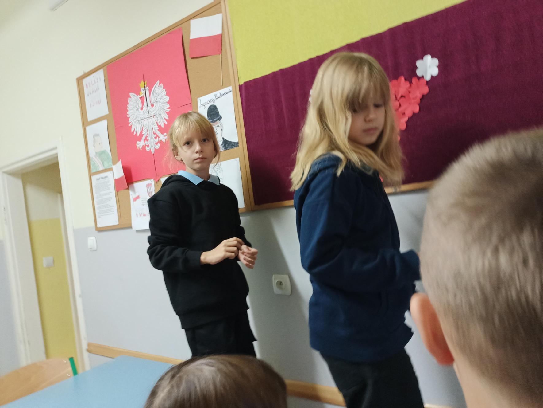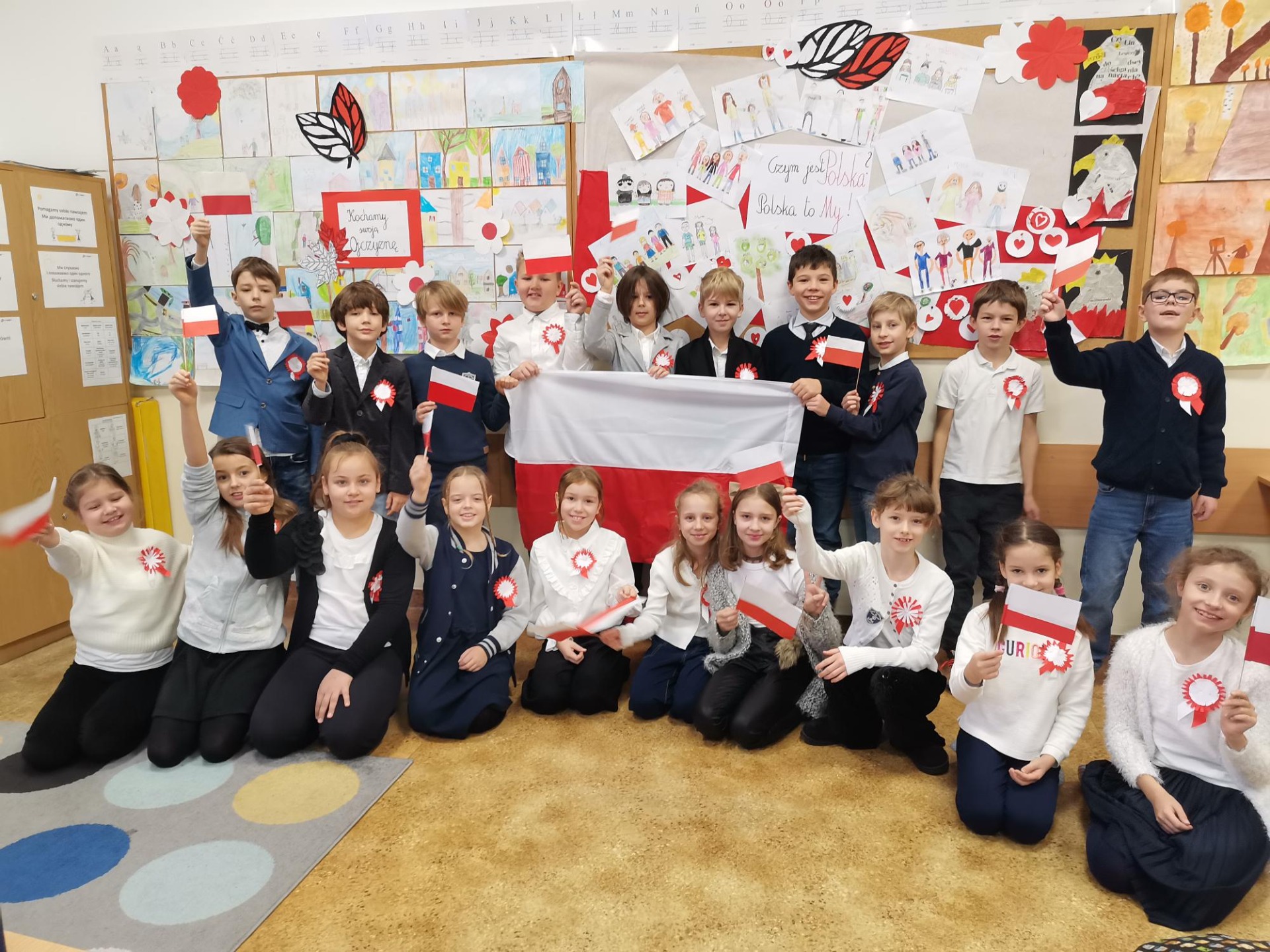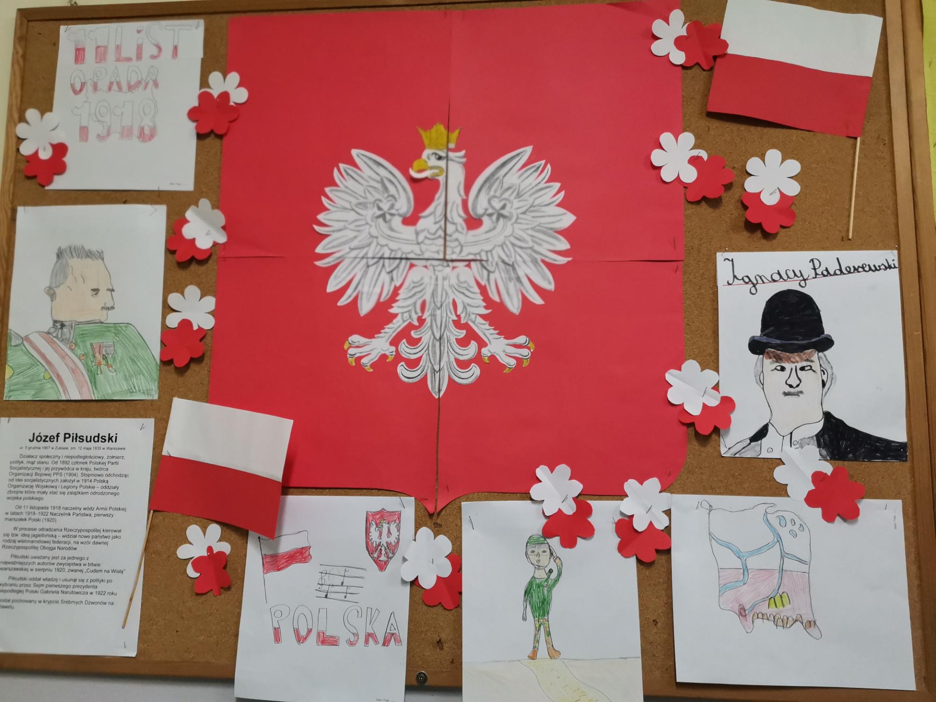 Z kolei zajęcia muzyczne stały się lekcją nauki hymnu narodowego. Dzieci wzięły udział w akcji „Szkoła do hymnu” i z wielkim zaangażowaniem odśpiewały "Mazurek Dąbrowskiego" w postawie pełnej szacunku. Został również przeprowadzony cykl zajęć: „Ku niepodległości”, „Z kart historii”, „Znam hymn Polski”. Uczniowie odwiedzili także miejsca pamięci narodowej, gdzie zapalili znicze i uczcili minutą ciszy pamięć tych, którzy walczyli za ojczyznę.