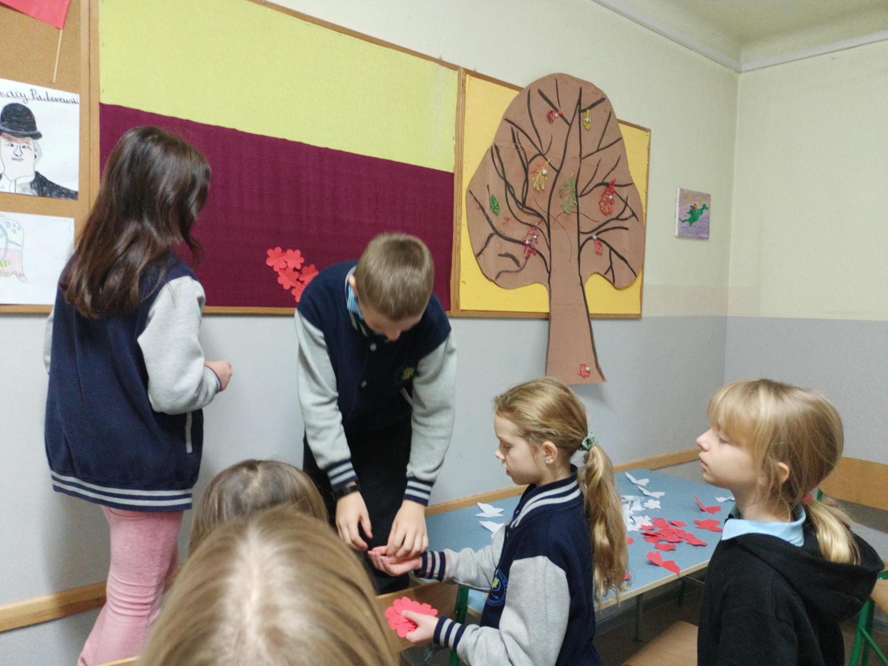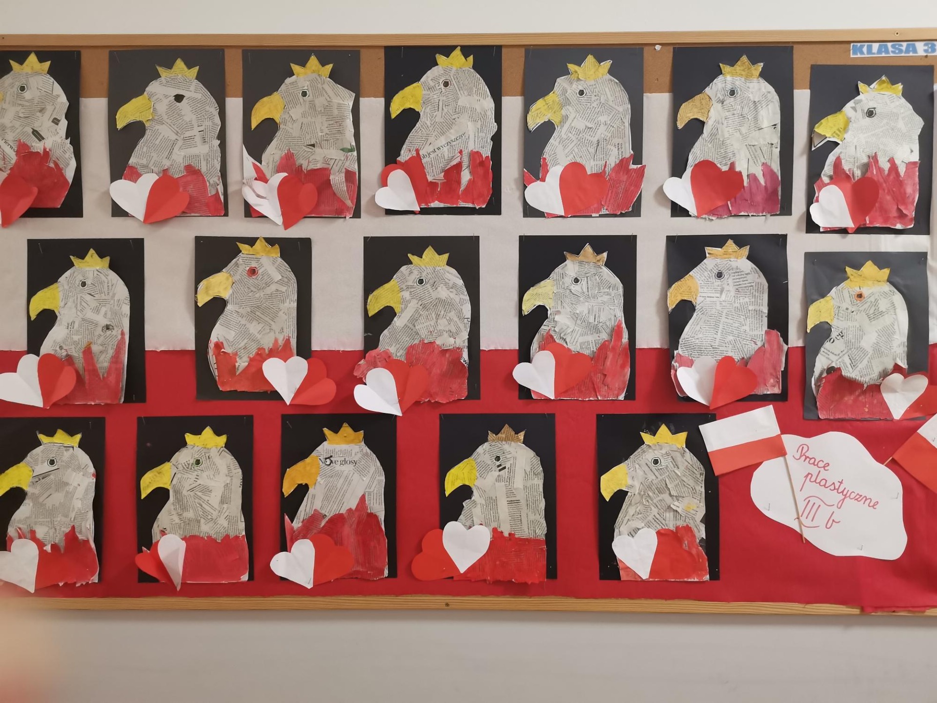 Dzieci w świetlicy przez cały tydzień odbyły szereg działań związanych z tematem Święta Niepodległości. Przygotowały gazetkę tematyczną. Ujawniły swoje zainteresowania, zdolności i umiejętności plastyczne. Szczególną wiedzą historyczną wykazał się uczeń klasy 3b Miłosz Sokołowski.