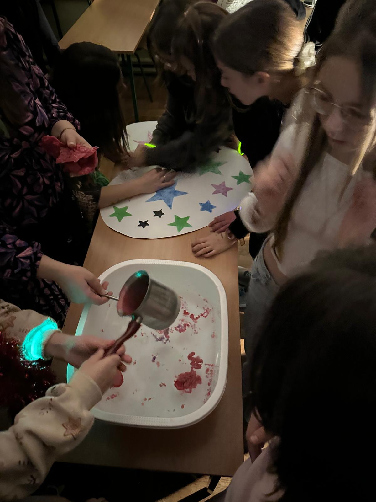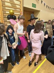 Uczniowie usłyszeli świetną muzykę puszczaną przez naszego szkolnego DJ, którym w tym roku również była przewodnicząca SU Beata Mossakowska. Podczas imprezy odbyły się różne gry i zabawy organizowane przez Samorząd Uczniowski przy pomocy Pani Sylwii Ramotowskiej, które cieszyły się wielkim zainteresowaniem. Można było również wywróżyć przyszłość z wosku z Panią Julitą Szczur oraz Katarzyną Ślusarczyk. Uczniowie mogli się poczęstować przygotowanym przez Radę Rodziców poczęstunkiem, za który serdecznie dziękujemy 😊