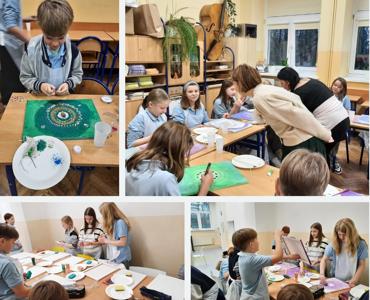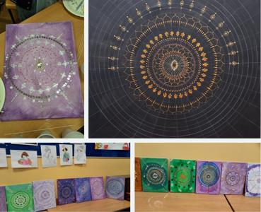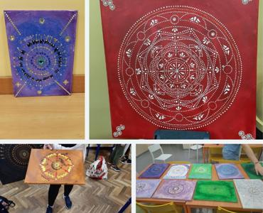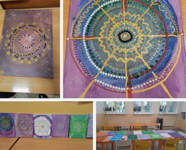 Pani Katarzyna Staniak- Litwińczuk (mama Glorii i Ryszarda) przeprowadziła w klasie 5a warsztaty robienia mandali. Rysowanie mandali przynosi spokój i harmonię. Każdy wzór jest indywidualny i zależy od energii jego właściciela.