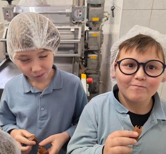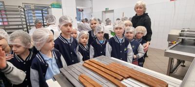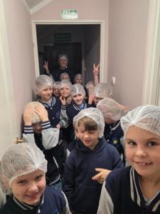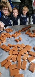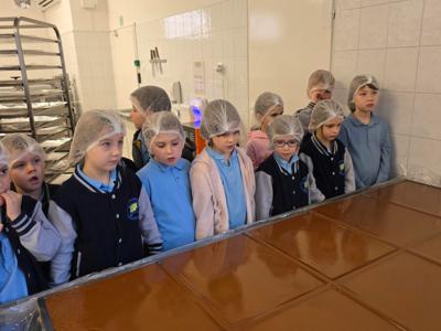 Zwiedzając zakład produkcyjny miały okazję obserwowania pełnego procesu przygotowywania tych słodkości oraz spróbowania świeżutkich kostek prosto z produkcji.