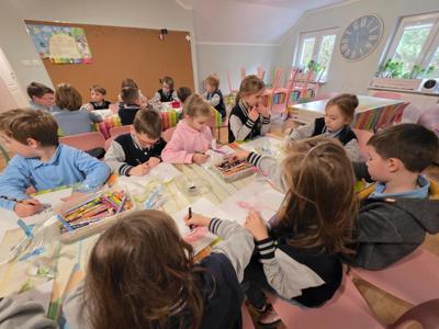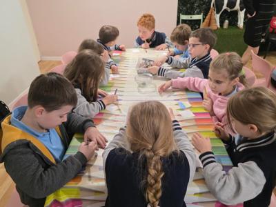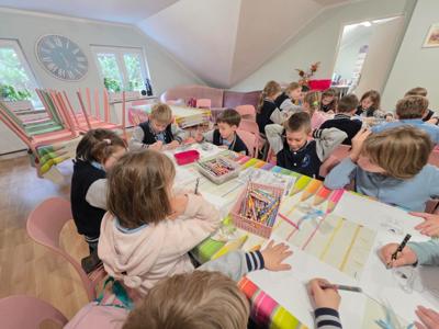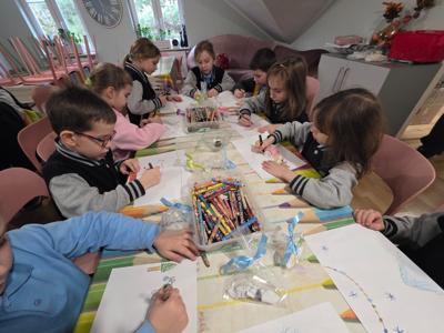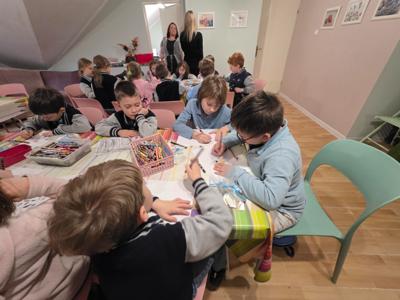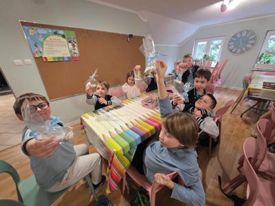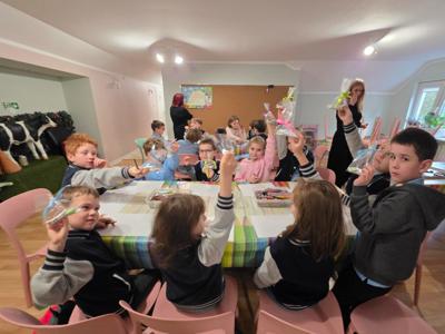 Podczas warsztatów projektowały własne kolorowe etykiety, uczyły się samodzielnie zawijać krówki, brały udział w konkursie plastycznym. Każde dziecko otrzymało na koniec małą paczuszkę z cukierkami.
