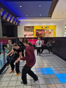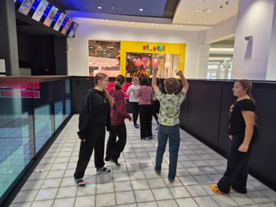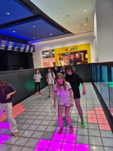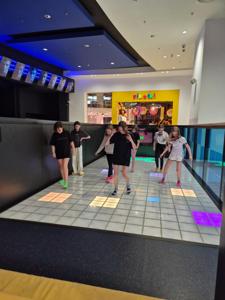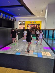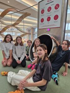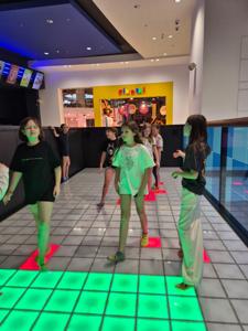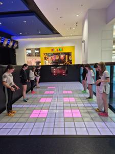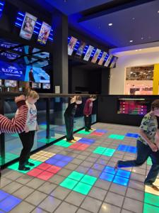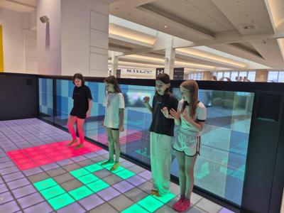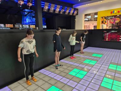 Wyprawa rozpoczęła się od wizyty w sali PIXEL XL, gdzie uczniowie bawili się świetnie w zespołach, doświadczając dobrodziejstw nowoczesnych technologii. Interaktywna podłoga zbudowana z kolorowych kafli, stała się polem do gier wywołujących szereg pozytywnych emocji. Po tej energetycznej części, przyszedł czas na pełną zadumy podróż do przeszłości.