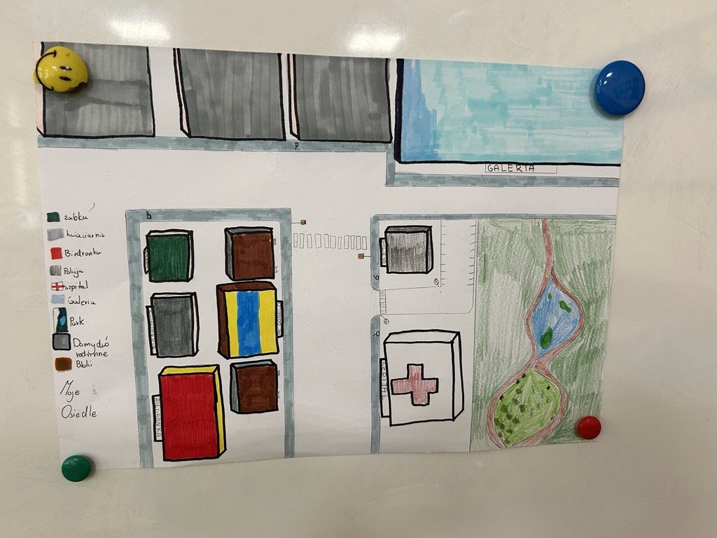 Na zajęciach techniki uczniowie wcielili się w role architektów i projektowali idealne osiedle mieszkaniowe. Jakie obiekty i miejsca powinny znaleźć się na osiedlu, aby było funkcjonalne i przyjazne dla mieszkańców? Oto propozycje uczniów klasy 6b.