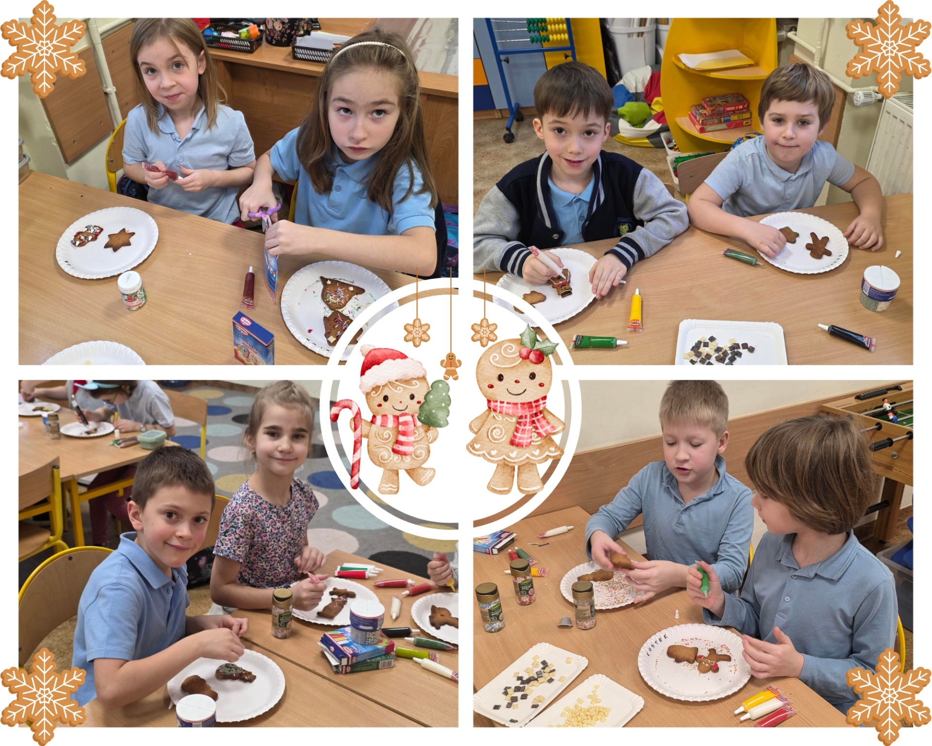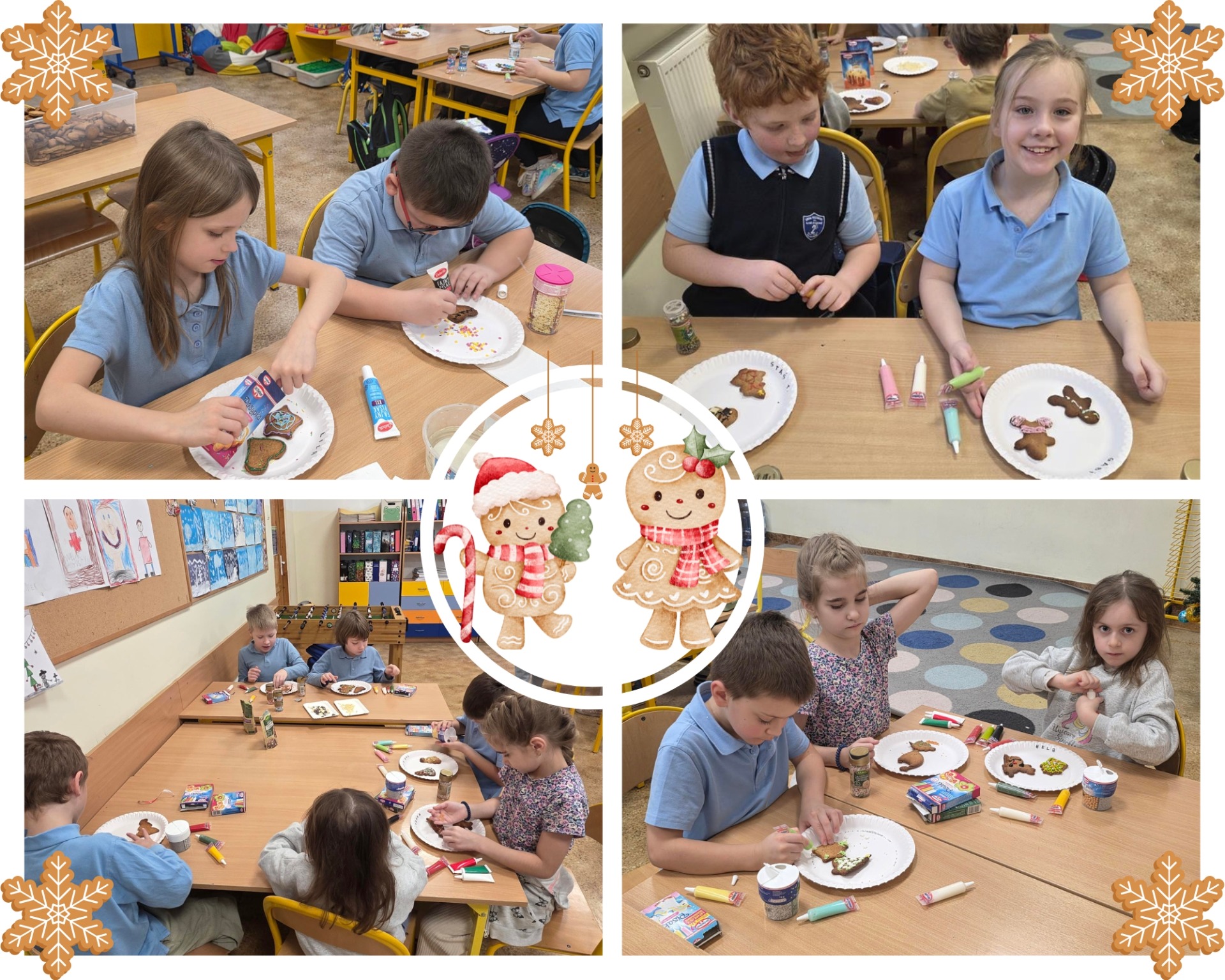 Najpierw uczniowie dobrze się przygotowali dbając o czyste ręce i odpowiednią odzież. Potem rozszyfrowali przepis i uczestniczyli w wykonaniu ciasta. Po wałkowaniu i wycinaniu świątecznych kształtów przyszedł czas na pieczenie ciastek w szkolnej kuchni. Kilka dni później dzieci przystąpiły do dekorowania ich lukrowymi pisakami i barwnymi posypkami.
