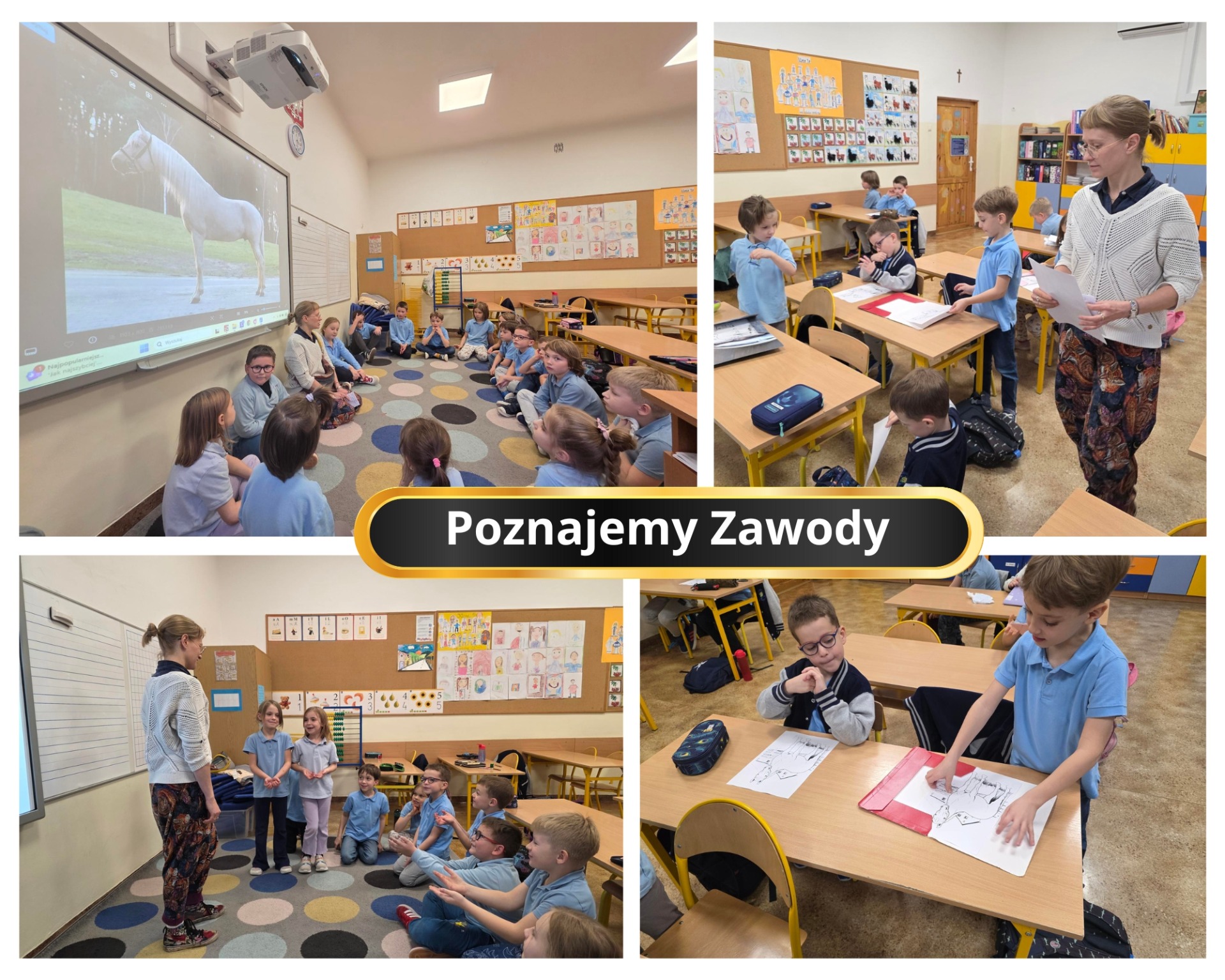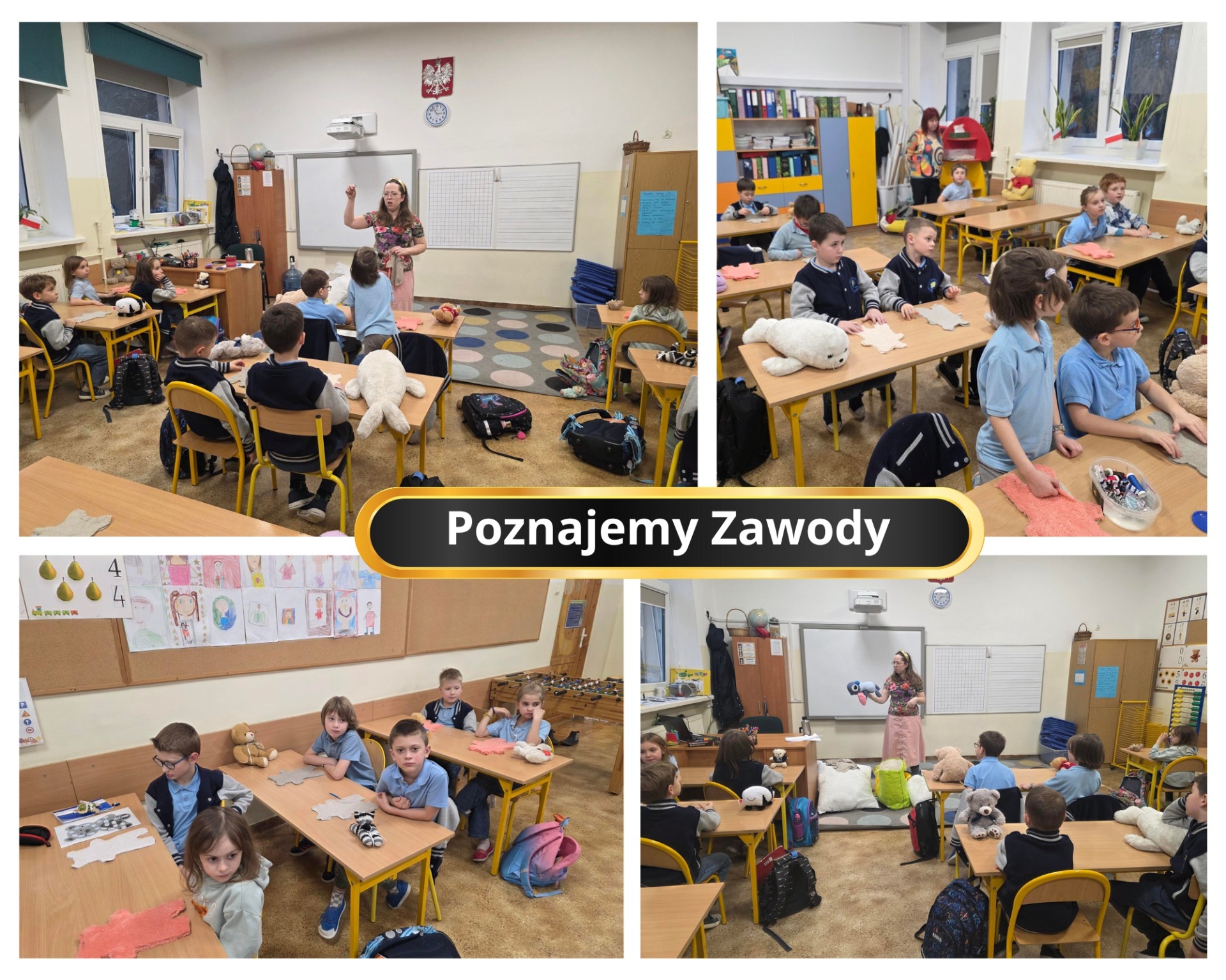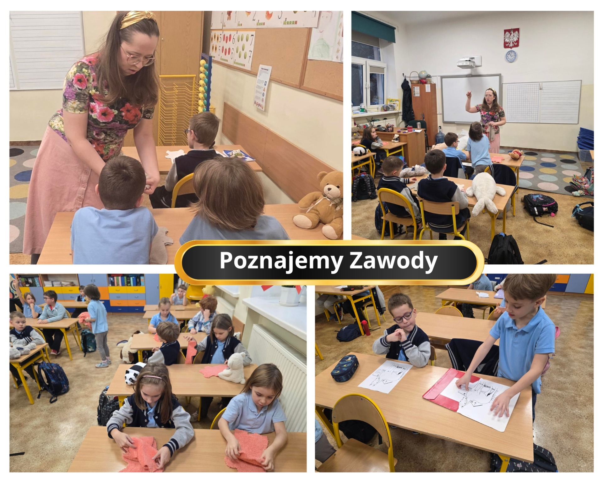 W ramach realizacji treści z zakresu doradztwa zawodowego uczniowie klasy 1a w pierwszym półroczu roku szkolnego 2025/26 brali udział w cyklu zajęć pt.: „Poznajemy zawody naszych rodziców”. Głównym celem tych zajęć było wstępne zapoznanie dzieci z wybranymi zawodami w ich najbliższym otoczeniu, kształtowanie motywacji do działania oraz pobudzanie i rozwijanie zainteresowań.