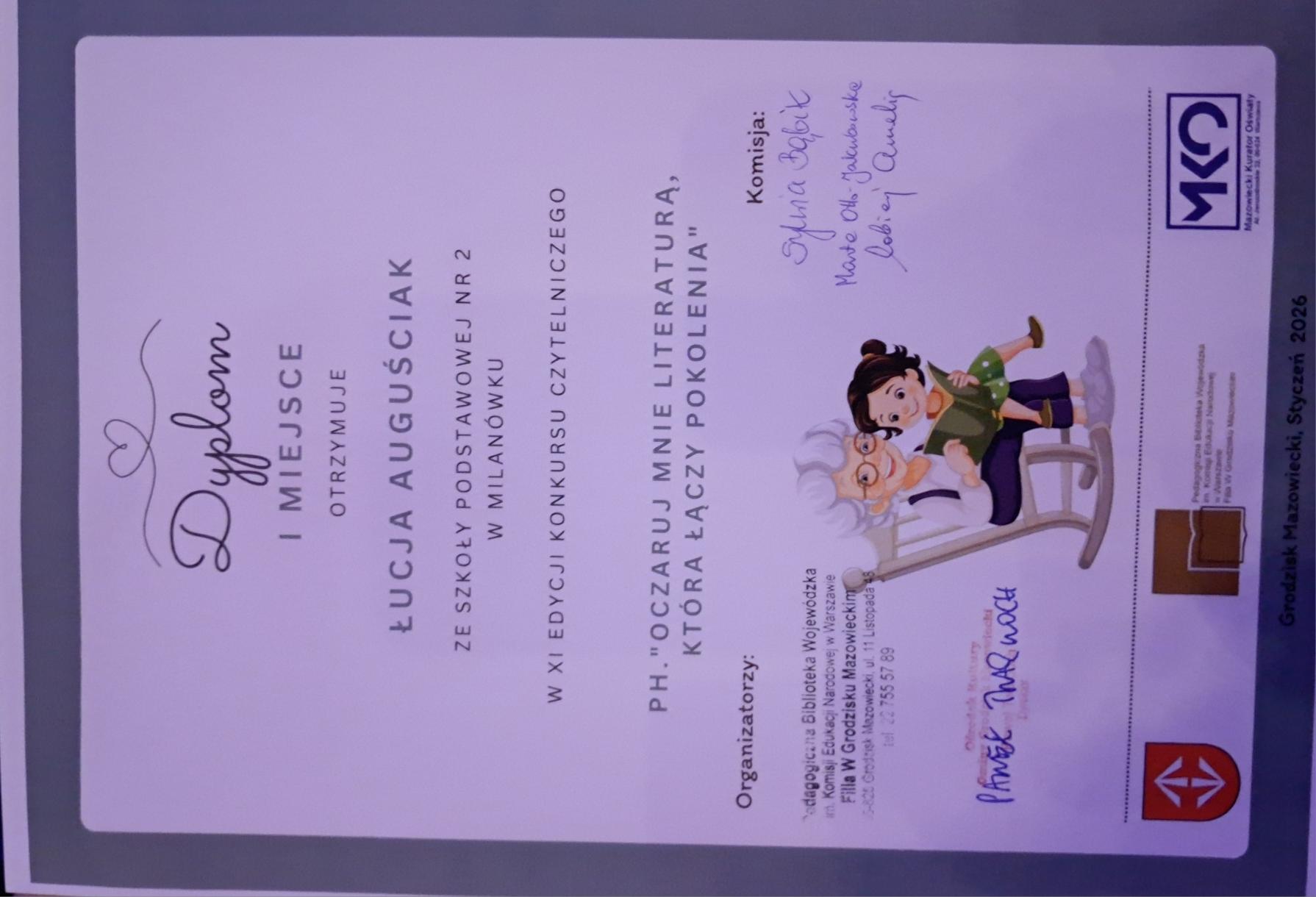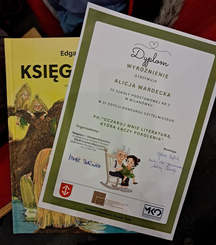 14 stycznia 2026 roku odbył się finał powiatowego konkursu czytelniczego „Oczaruj mnie literaturą, która łączy pokolenia”. Z dumą informujemy, że nasi uczniowie odnieśli w nim znaczące sukcesy, prezentując wysoki poziom umiejętności oraz pasję do literatury.